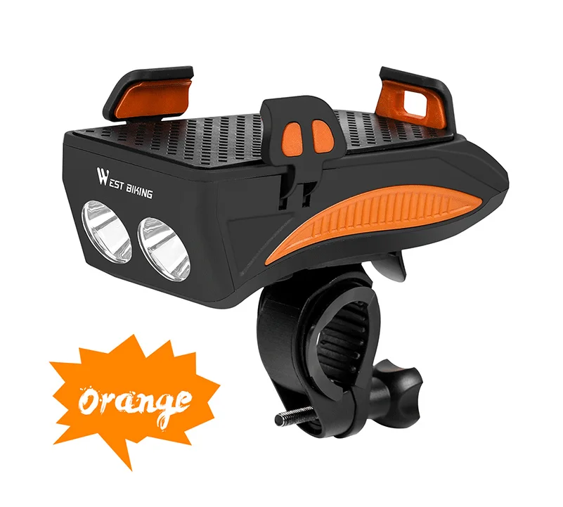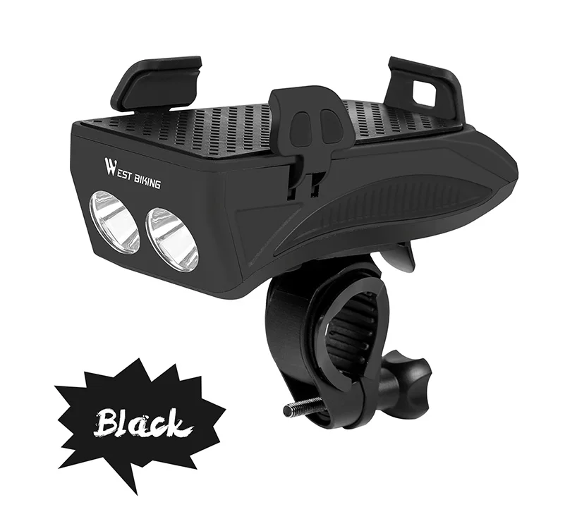 WEST BIKING Многофункциональный велосипедный светильник 4 в 1 велосипедный флэш-светильник держатель для телефона с велосипедным колокольчиком внешний аккумулятор 400 люмен велосипедный передний светильник s