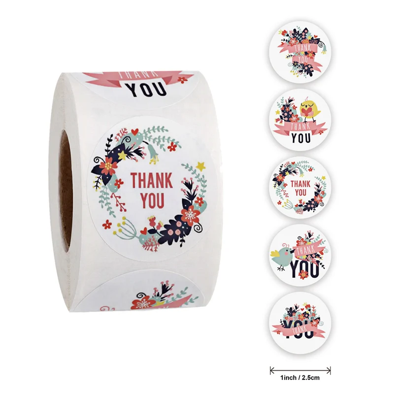 500 шт Цветочные наклейки Спасибо наклейки этикетки для печати 1 дюйм Свадьба День рождения ручная работа наклейки конверт этикетки для печати