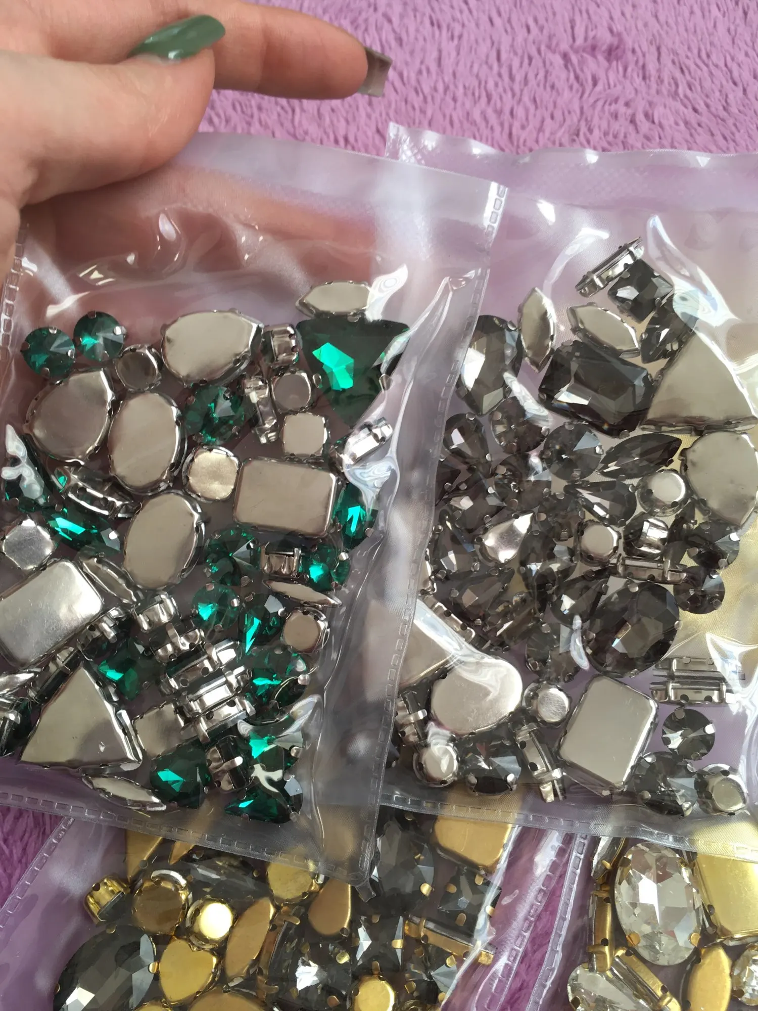 (Капли воды 8x13 мм, маркиз 7x15 мм, маркиз 4x15 мм, риволи 10 мм, квадрат 8 мм,)5x6 шт. каждый.
