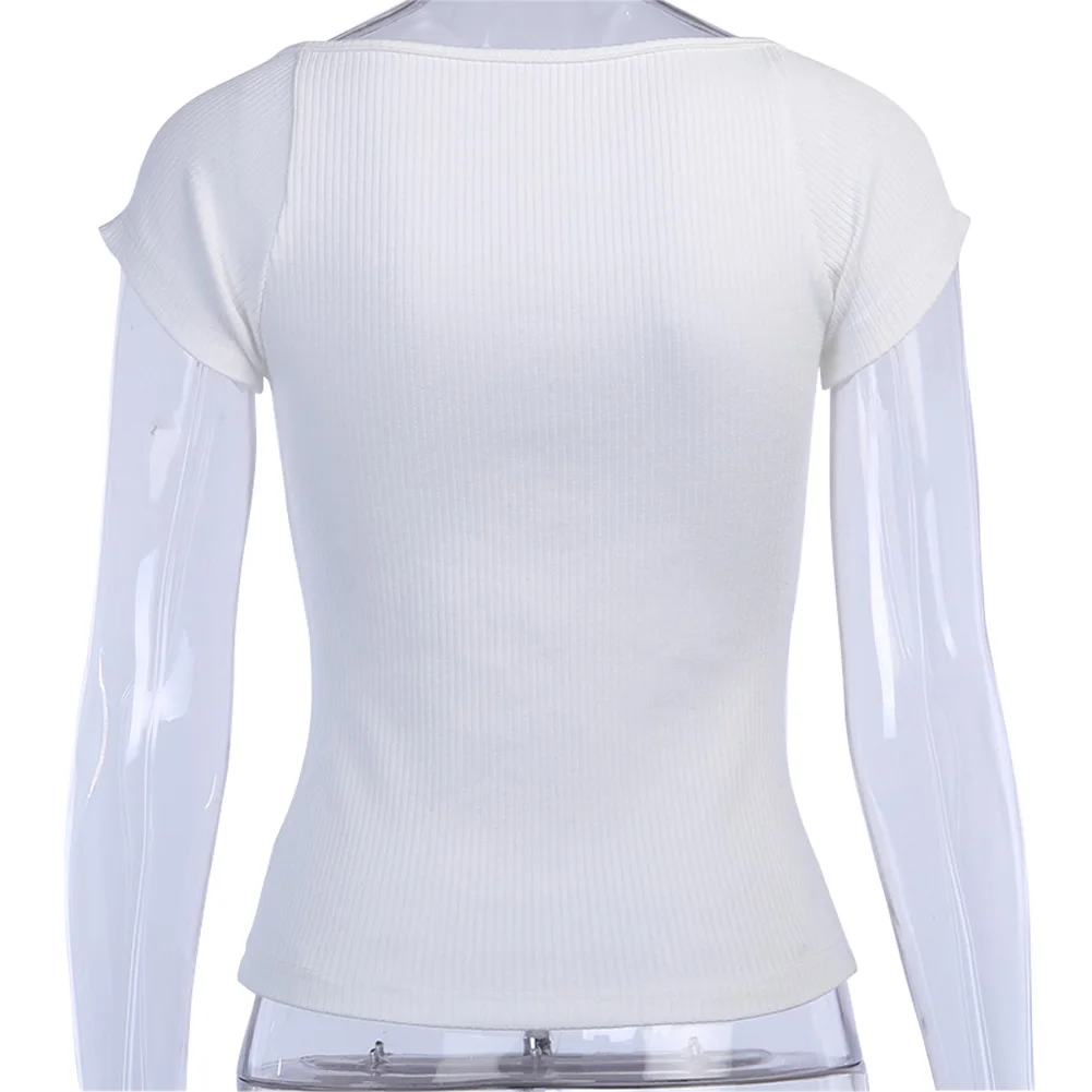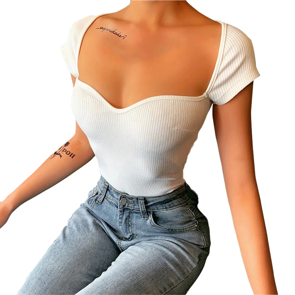 Сексуальная Женская футболка с квадратным вырезом и коротким рукавом, Клубная одежда, новинка 2020, облегающая, черная, белая, однотонная, OL, футболка с открытыми плечами, верхняя одежда
