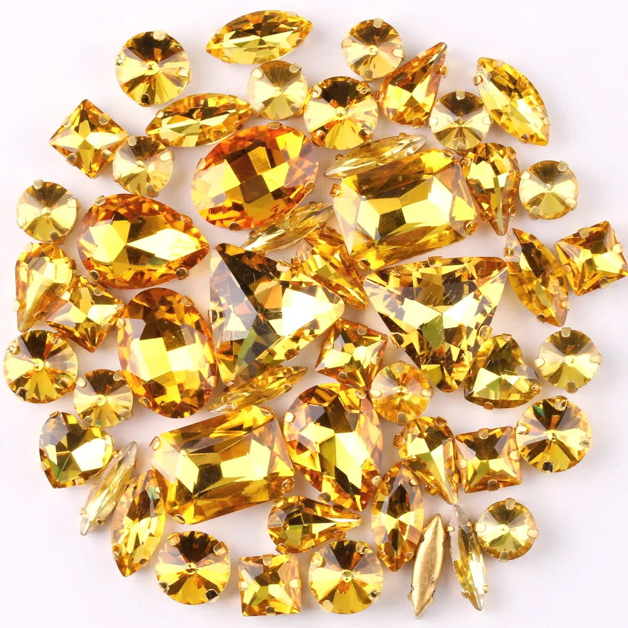 Золотые стразы, 50 шт.пакет формы, смешанный топаз, стеклянные стразы, стразы, свадебные туфли, сумки, отделка сделай сам