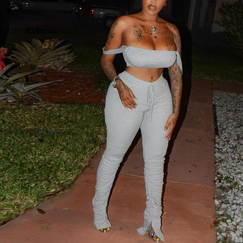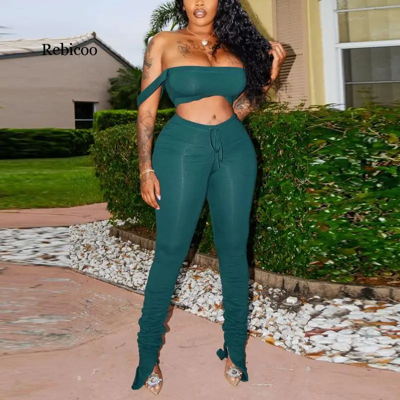 10 цветов, Женский однотонный топ на бретельках с открытыми плечами и обтягивающие штаны, комплект, сексуальные летние костюмы, шикарные наряды