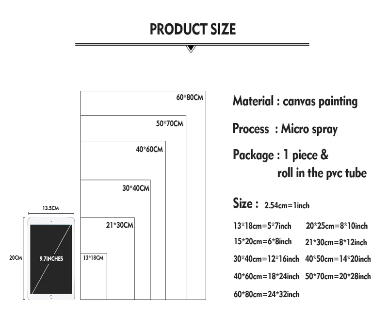 Size21x30cm,30x40cm,35x50cm,40x60cm,50x70cm,60x80cm