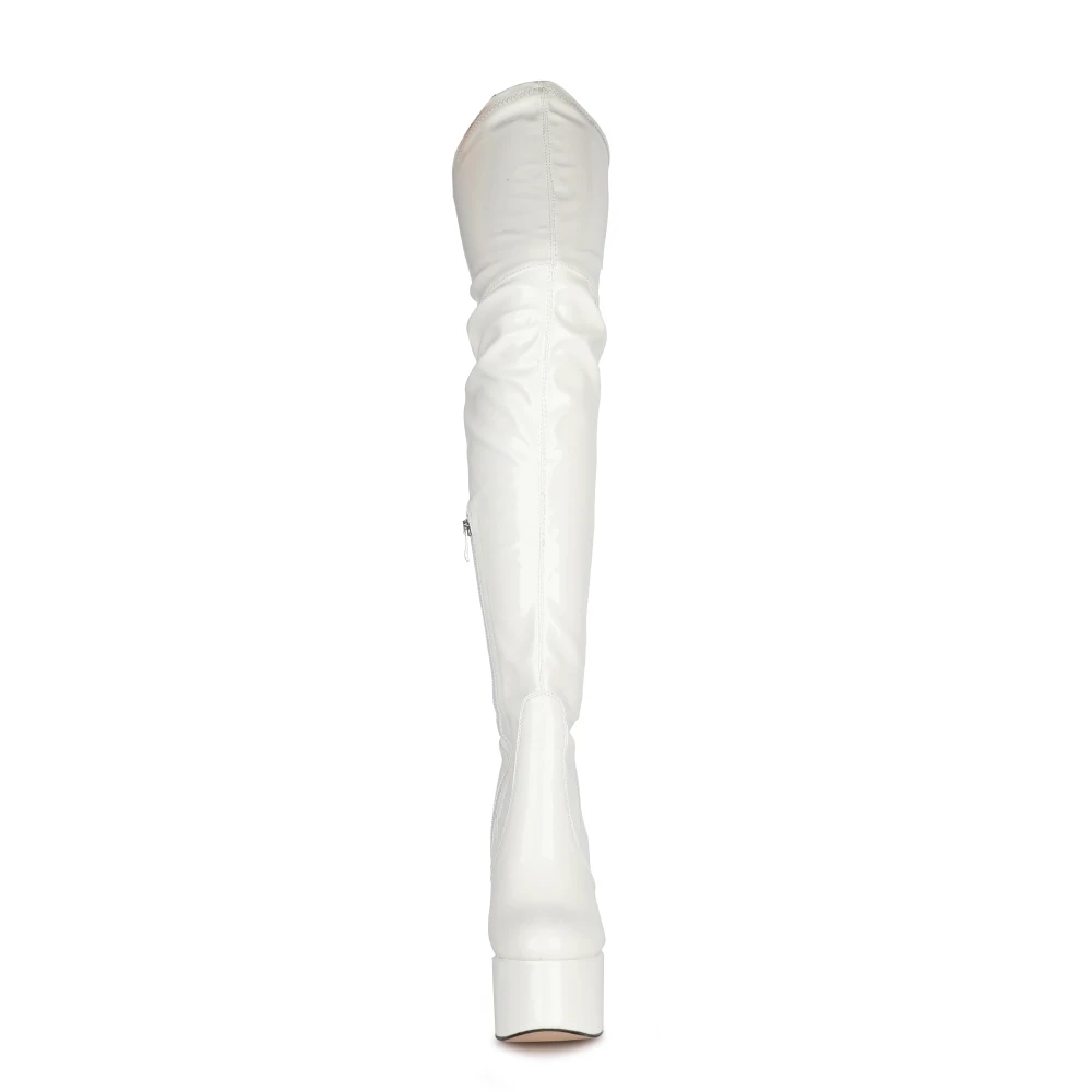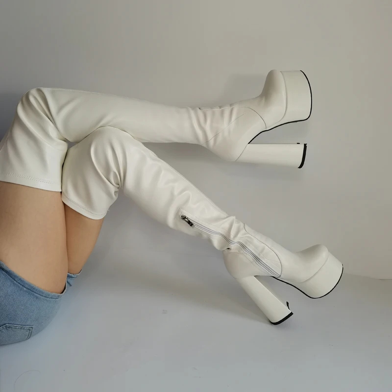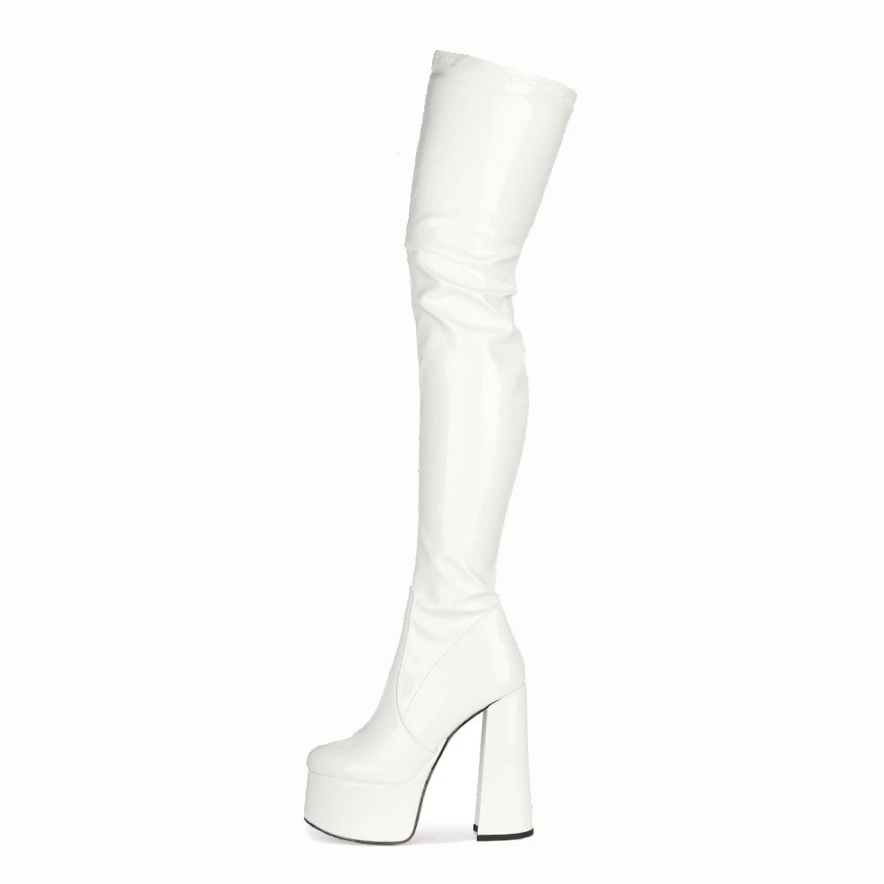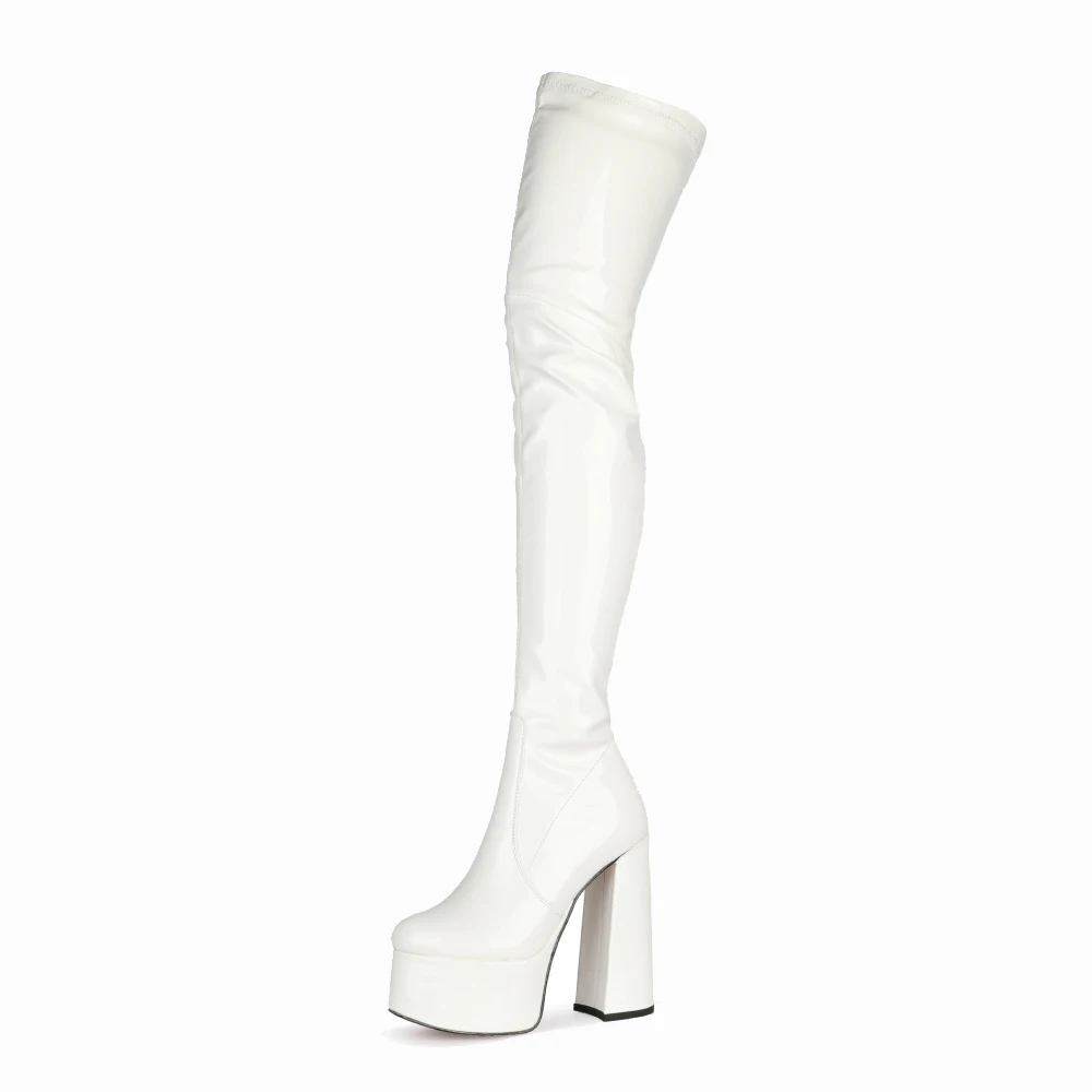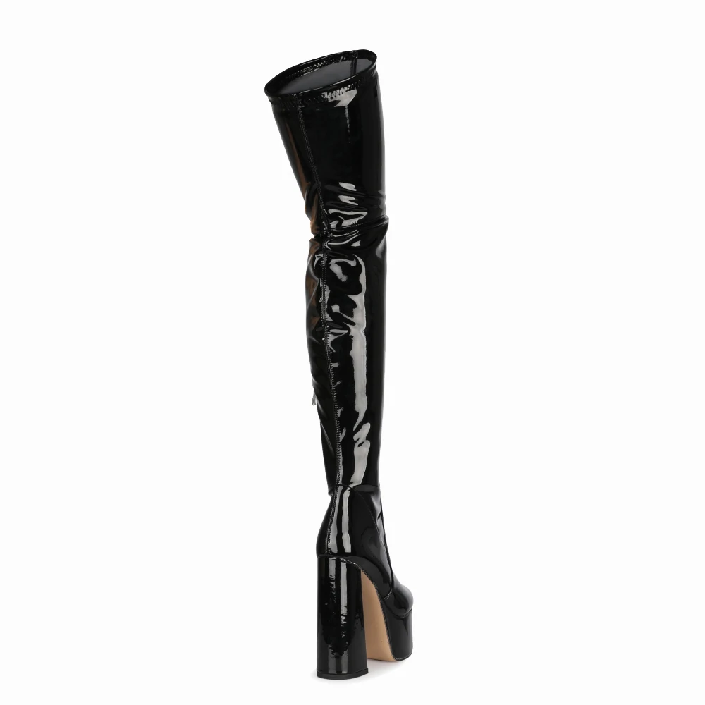 Женские высокие сапоги из эластичной ткани, обувь из лакированной к...