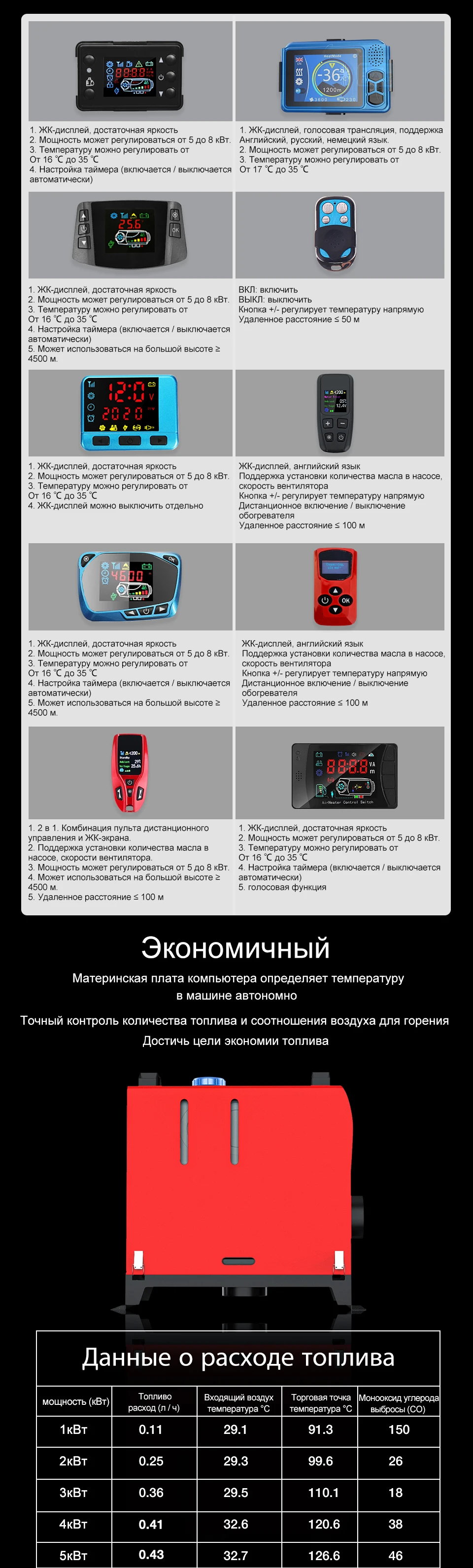VТопливо, электричество, температура может быть установлена произвольно.
