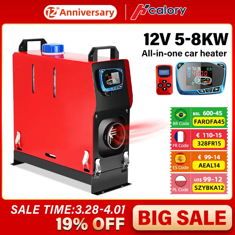 Hcalory 12 В 8 кВт Дизельный подогреватель воздуха узловой Регулируемый Синий ЖК-дисплей Английский пульт дистанционного управления интегрированный парковочный обогреватель для автомобиля