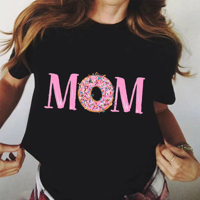 Женская футболка с короткими рукавами и круглым вырезом, летняя повседневная футболка с принтом Мама и пончики в стиле Харадзюку