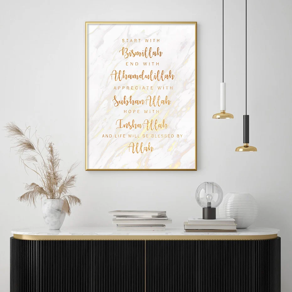 Современный исламский Бисмиллах Арабская стена искусство мрамор фон холст картина, печатный плакат картины для гостиной украшение дома