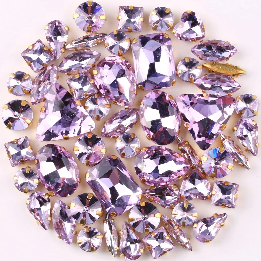 Набор из 50 шт.пакет с золотыми лапами, набор из фиолетового стекла, Стразы для шитья, свадебные сумки для обуви, сделай сам