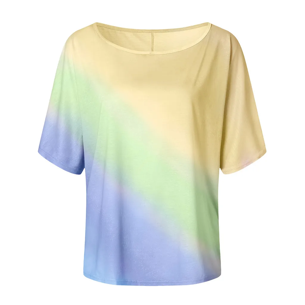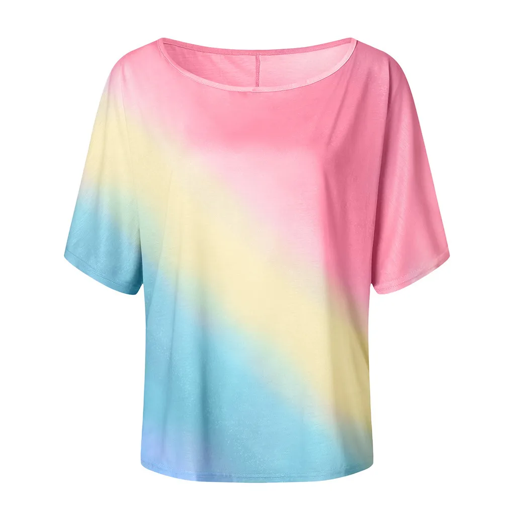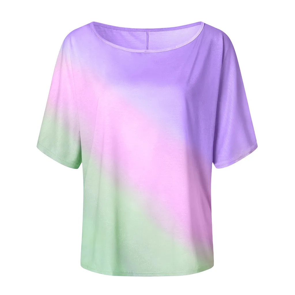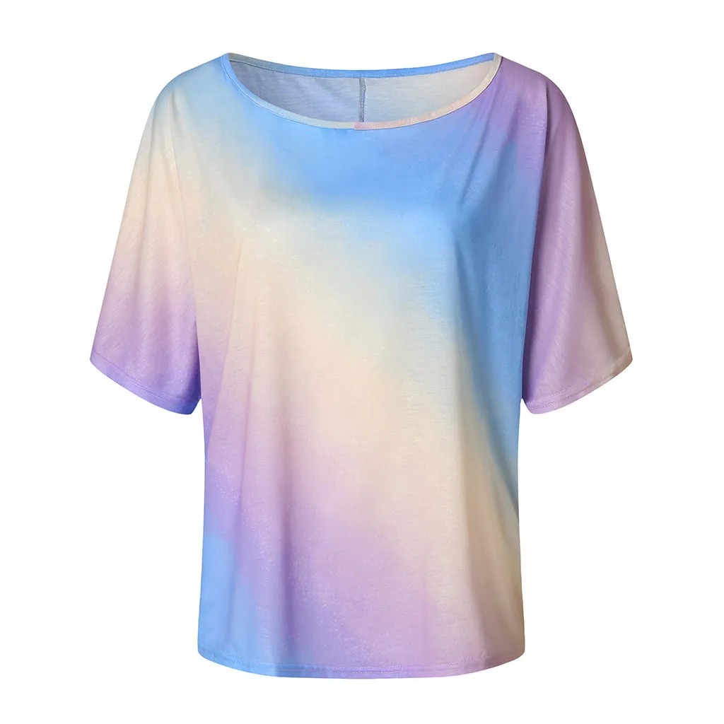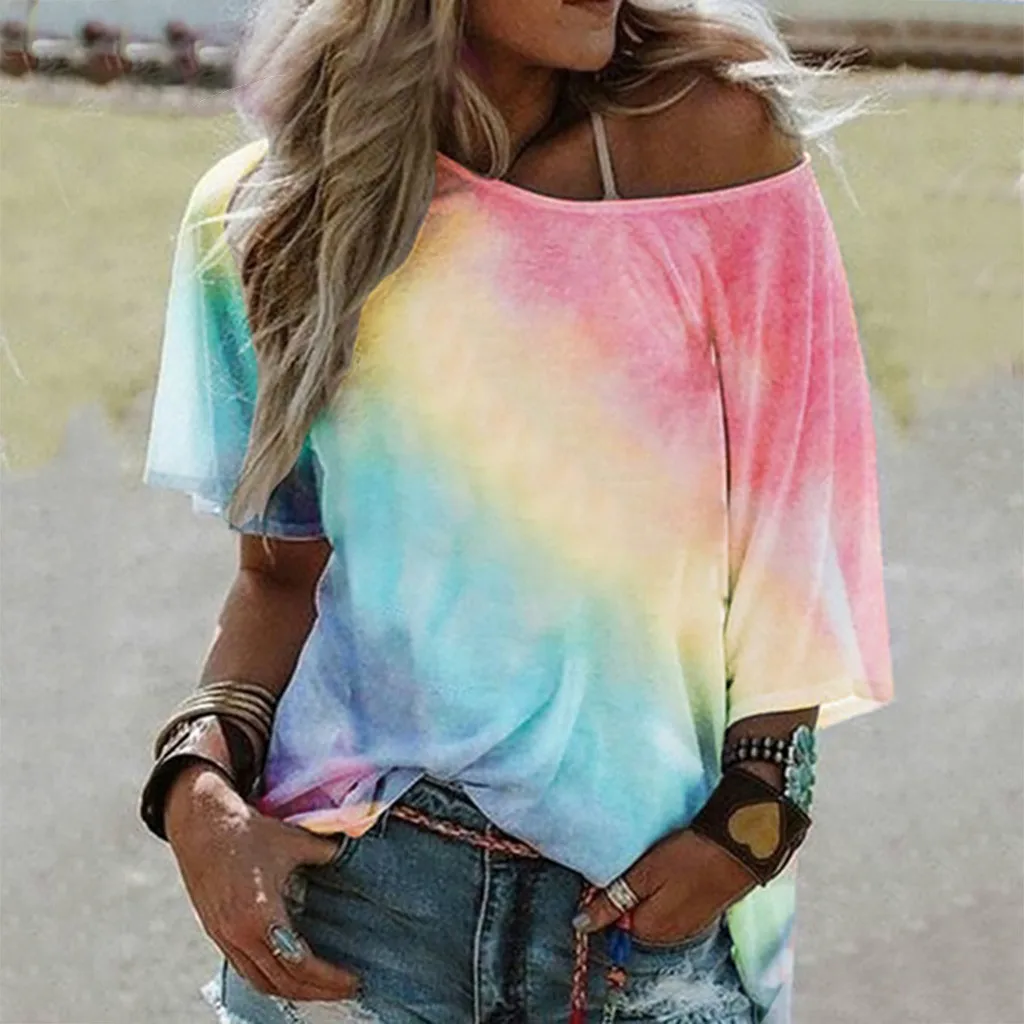 Футболка женская с принтом тай-дай, свободная модная уличная рубашка с открытыми плечами, одежда для женщин на лето