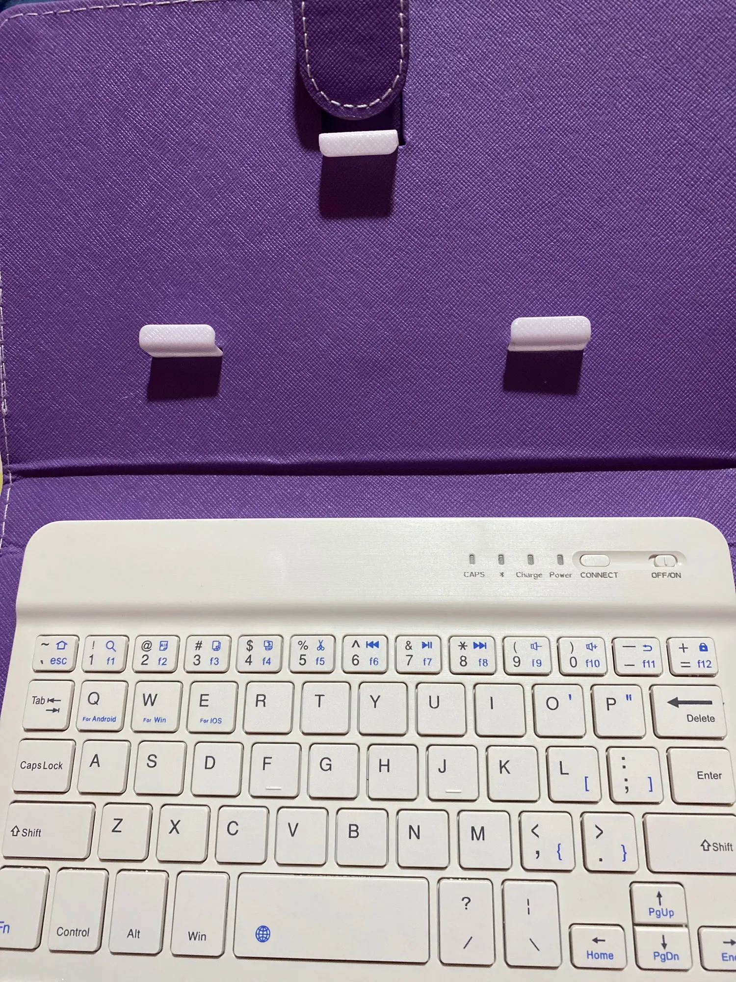 При вскрытие пакета, 5 кнопок от клавиатуры лежали отдельно, у одной из них отломано крепление. Сам чехол не плохой. Телефон клавиатуру видит. Жаль только ,что одна кнопка теперь постоянно вылетает..