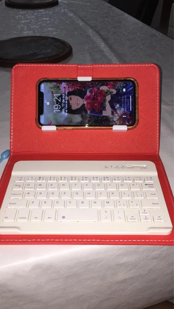 Все идет отлично. Это не на испанском языке, но тестирование немного удаляет все необходимые символы быстро. На ощупь клавиш очень похож на механическую клавиатуру, я поставил только 2 жемчуга, время прибытия не было соблюдено, и что держатель телефона не очень сильный, как держать телефон вертикально.