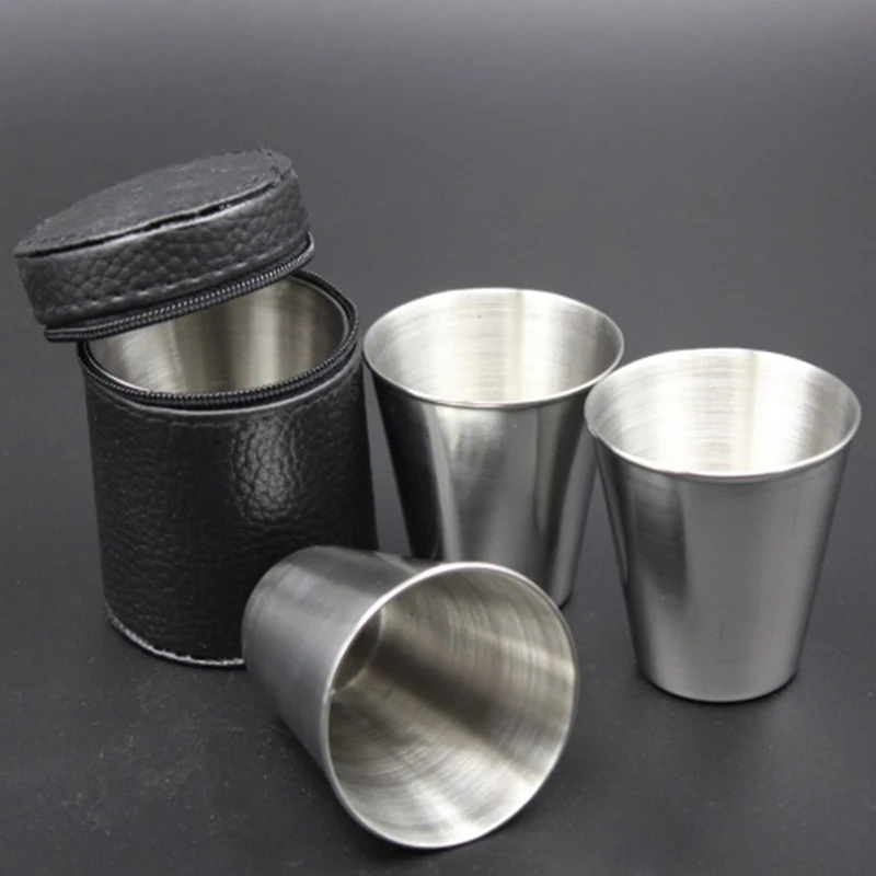 4 шт.компл., чашка для вина из нержавеющей стали, чашка для кемпинга, 30 мл70 мл170 мл, портативная, для путешествий, металлическая чашка для напитков с кожаной сумкой