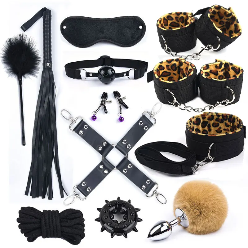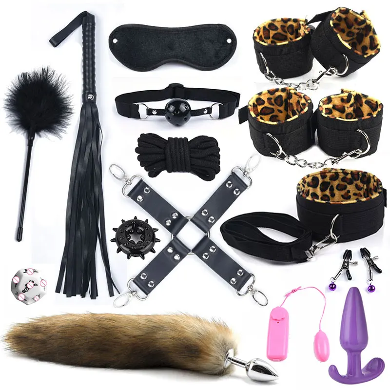 Металлическая Анальная пробка 40 см с лисьим хвостом, набор для бондажа БДСМ и леопарда, наручники, интимные игрушки для женщин, Вибратор для взрослых и эротическая Анальная
