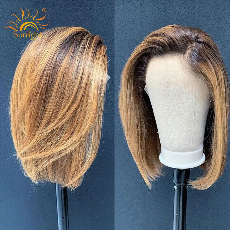Светлый парик из человеческих волос Sunlight Ombre, бразильский Реми, прямые волосы 13x4, кружевные передние человеческие волосы, парики с детскими волосами
