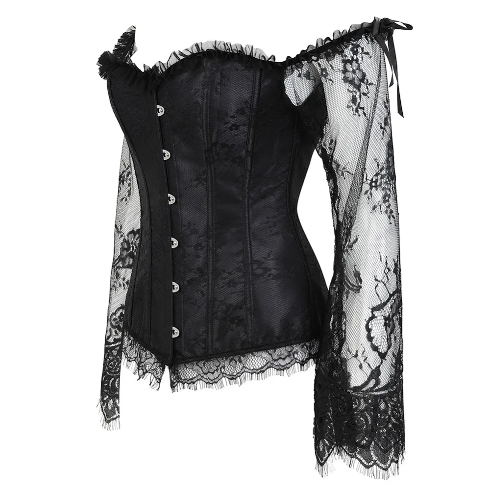 Сексуальный кружевной корсет Топы для женщин с длинными рукавами винтажный Стиль Викторианский Ретро Бурлеск корсет жилет Топ Бюстье белье S-2XL
