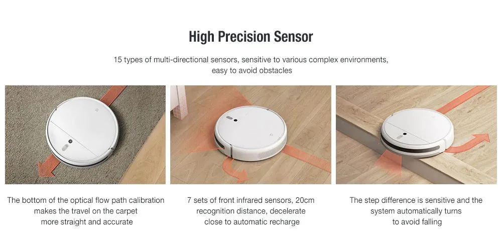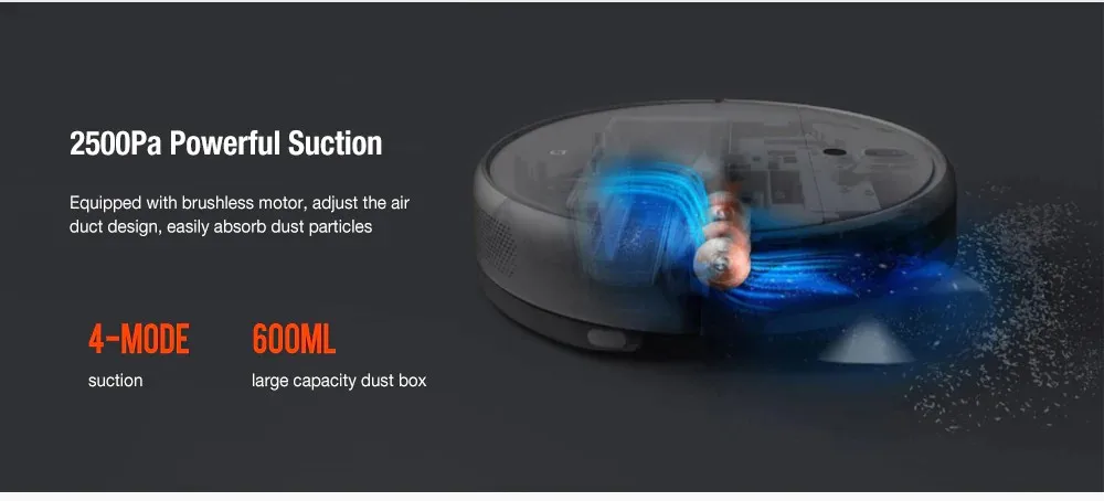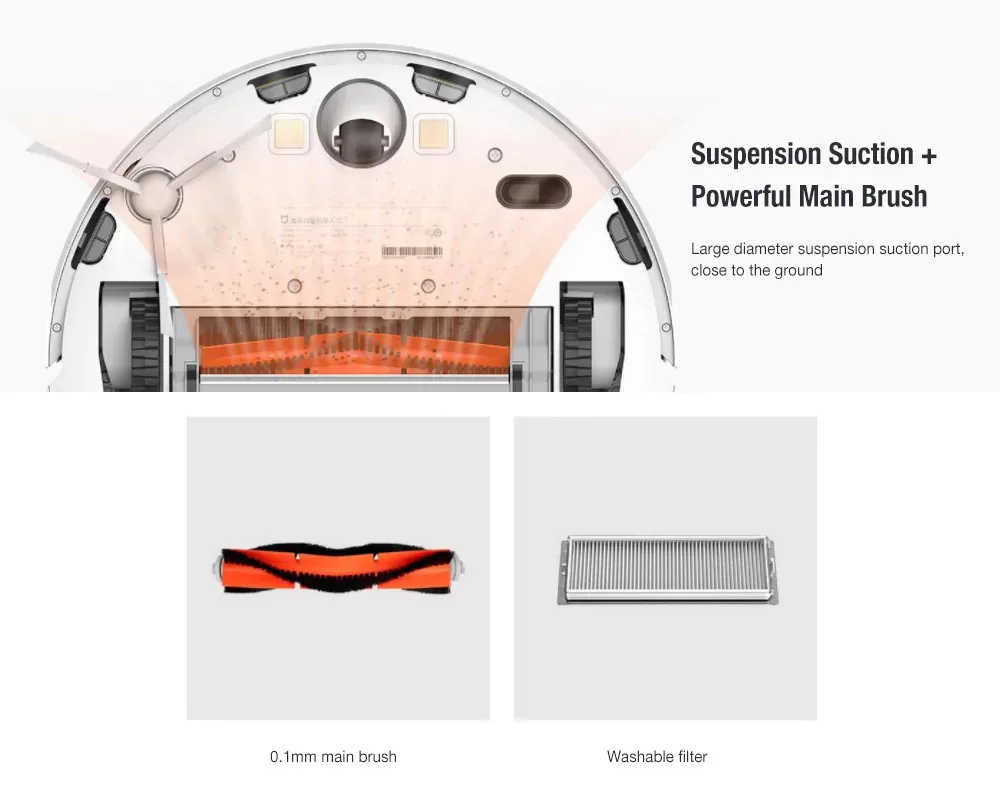 Основные характеристики:● Визуальная динамическая навигационная системаБыстро захватывает информацию о координатах, извлекает сложные пространственные особенности, поддерживает динамические исследования во время путешествий, более точно и эффективно сопоставляет карты.● Взьем + 4-х ядерный ПроцессорБолее расчетное, способное найти точное положение робота в режиме реального времени и разумно нарисовать рабочий путь.● Резервуар для воды 200 млТочное управление водой, влажное сопротивление-очиститель.● 2500 ПА Мощное всасываниеОснащен бесщеточным Мотором, регулирует дизайн воздуховода, легко впитывает частицы пыли.● Всасывание подвески + мощная основная щеткаПрисоска большого диаметра, близко к земле.● Высокоточный датчик15 типов разнонаправленных датчиков, чувствительных к различным комплексным условиям, легко избежать препятствий.● Пульт дистанционного управления с приложением MijiaНазначение очистки, не дома также может контролировать.● Пересекающее препятствие 20 ммЛегко поднимается по порогу, рельсам, ковру.● 8,2 см стройное телоЛегко дойти до нижней части кровати, шкафа и дивана.● Автоматическая зарядкаАвтоматически заряжается при менее 15% заряда батареи. Когда аккумулятор заряжается до 80%, вернитесь в положение отключения питания и продолжайте подметать.Параметры: