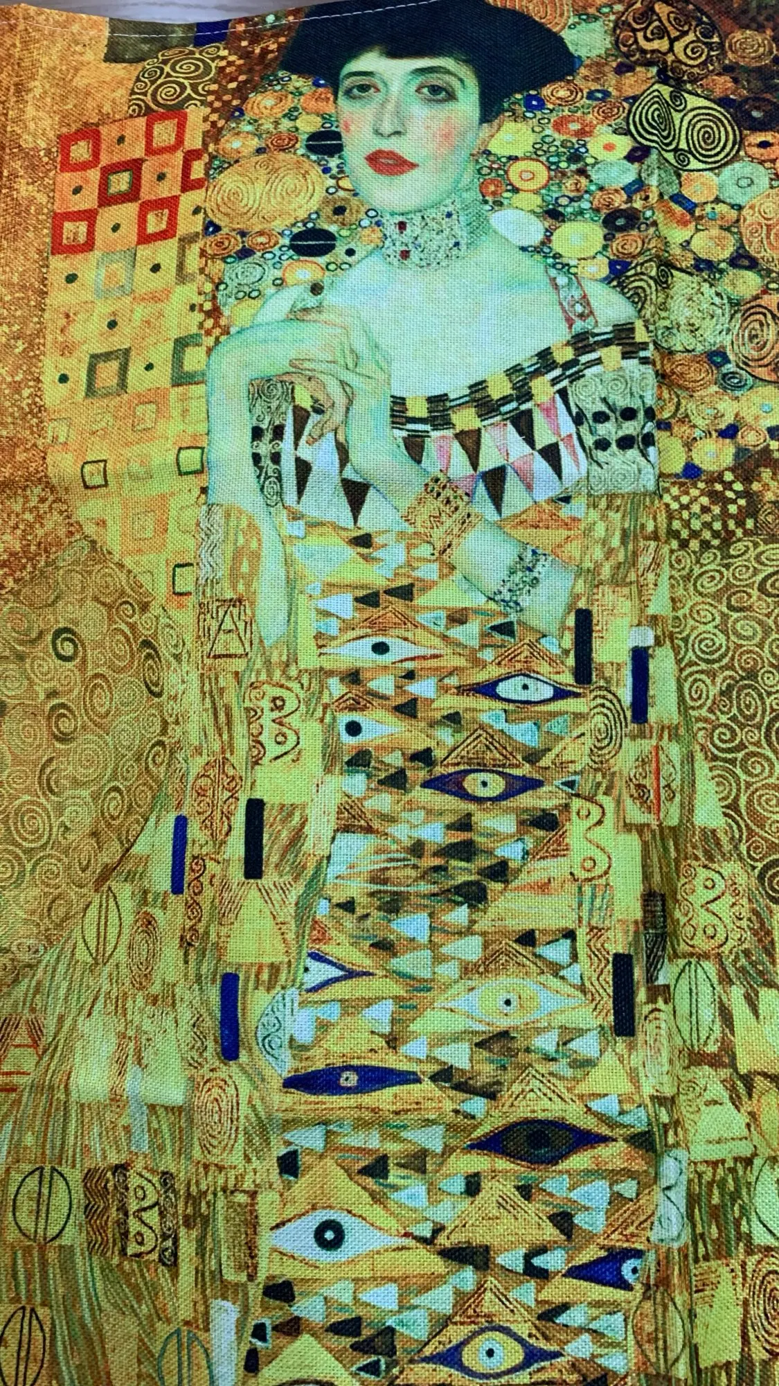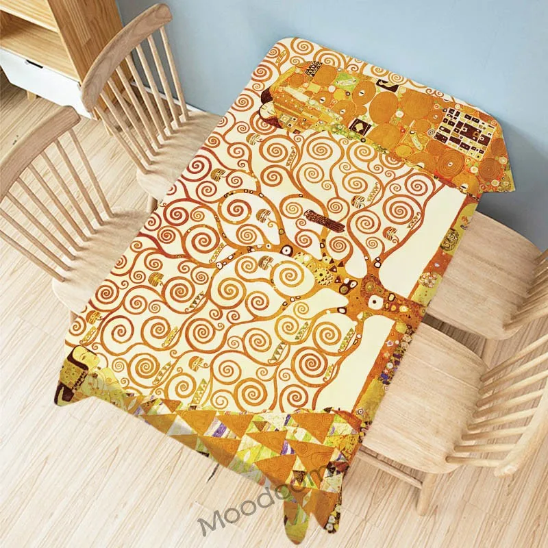 Gustav Klimt знаменитая картина маслом золотого цвета поцелуй сельская пасторальная зеленая садовая художественная Декоративная скатерть льняная скатерть
