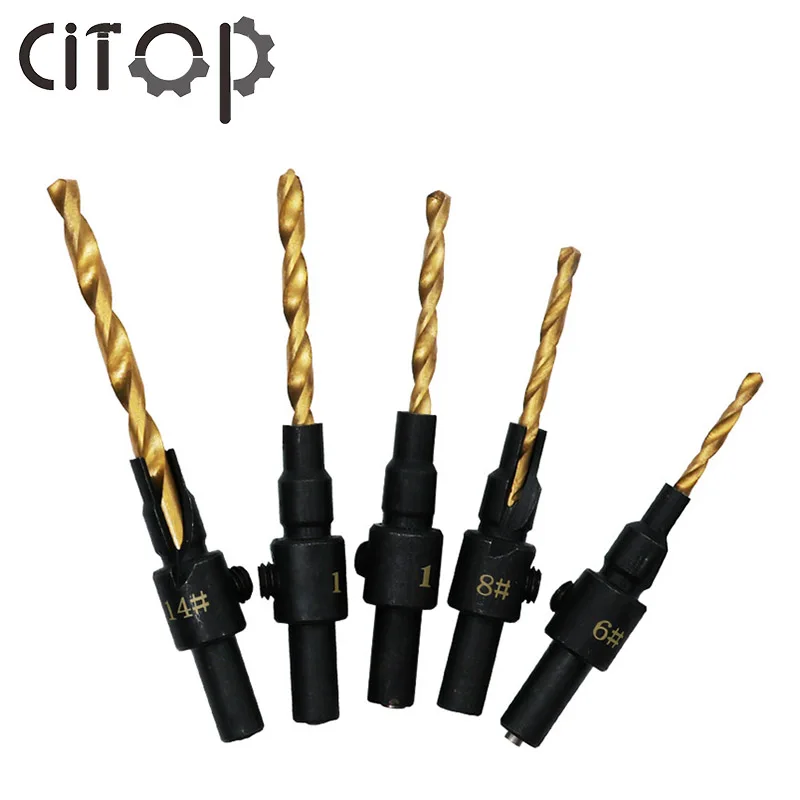 Citop 5 шт./компл. 1/4 дюйма круглое сверло с титановым покрытием на развертка с коническим хвостовиком отверстий с гаечным ключом деревообрабатывающее сверло сверла по дереву