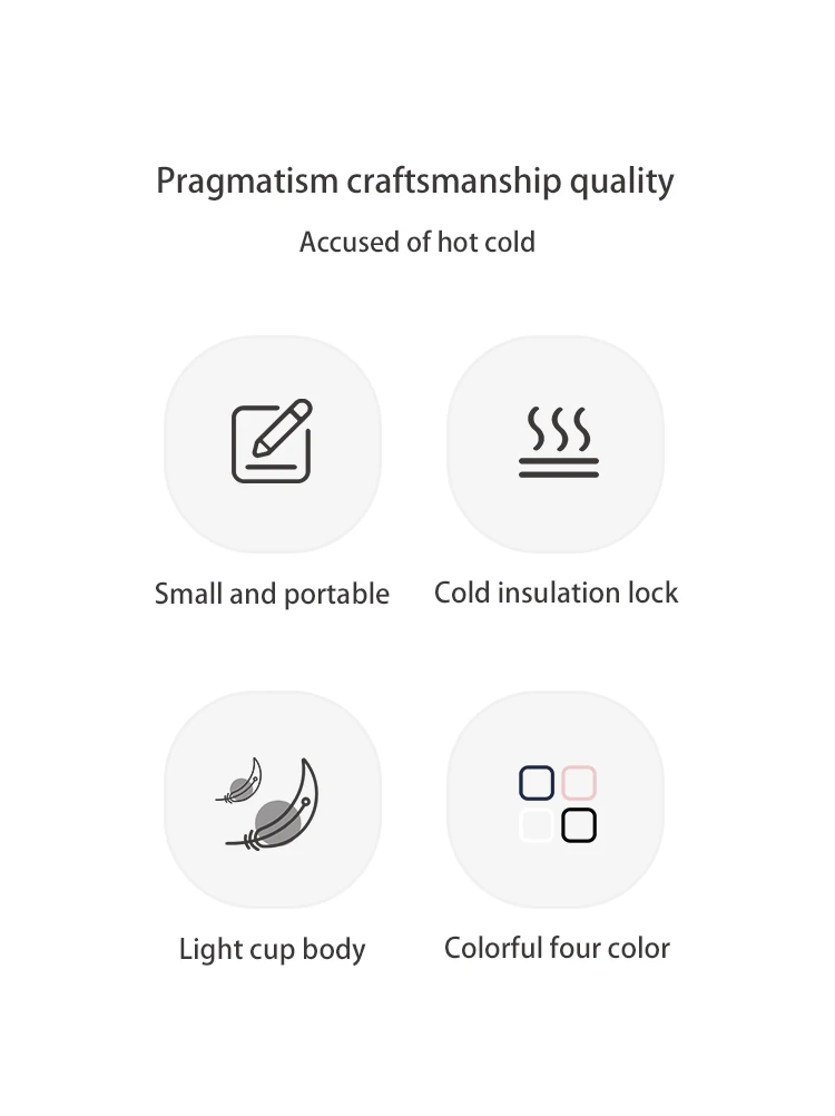Модель продукта: MJMNBWB01WC Цвет: черный, белый, розовый, синий Материал: ПП, силикагель, 304 Аустенитная Нержавеющая сталь Производительность изоляции: выше 58 ℃ в течение 6 часов Эффективность охлаждения: ниже 12 ℃ в течение 6 часов Ёмкость: 350 мл Вес: около 190 г Внешний размер: 61x61x185mm