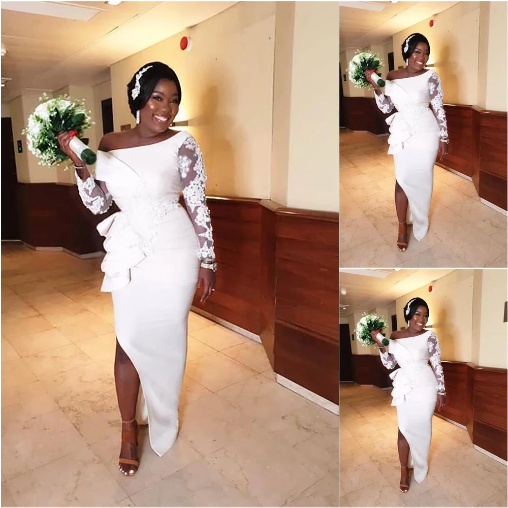 Винтажное белое выпускное платье русалки длиной до пола с одним пле...