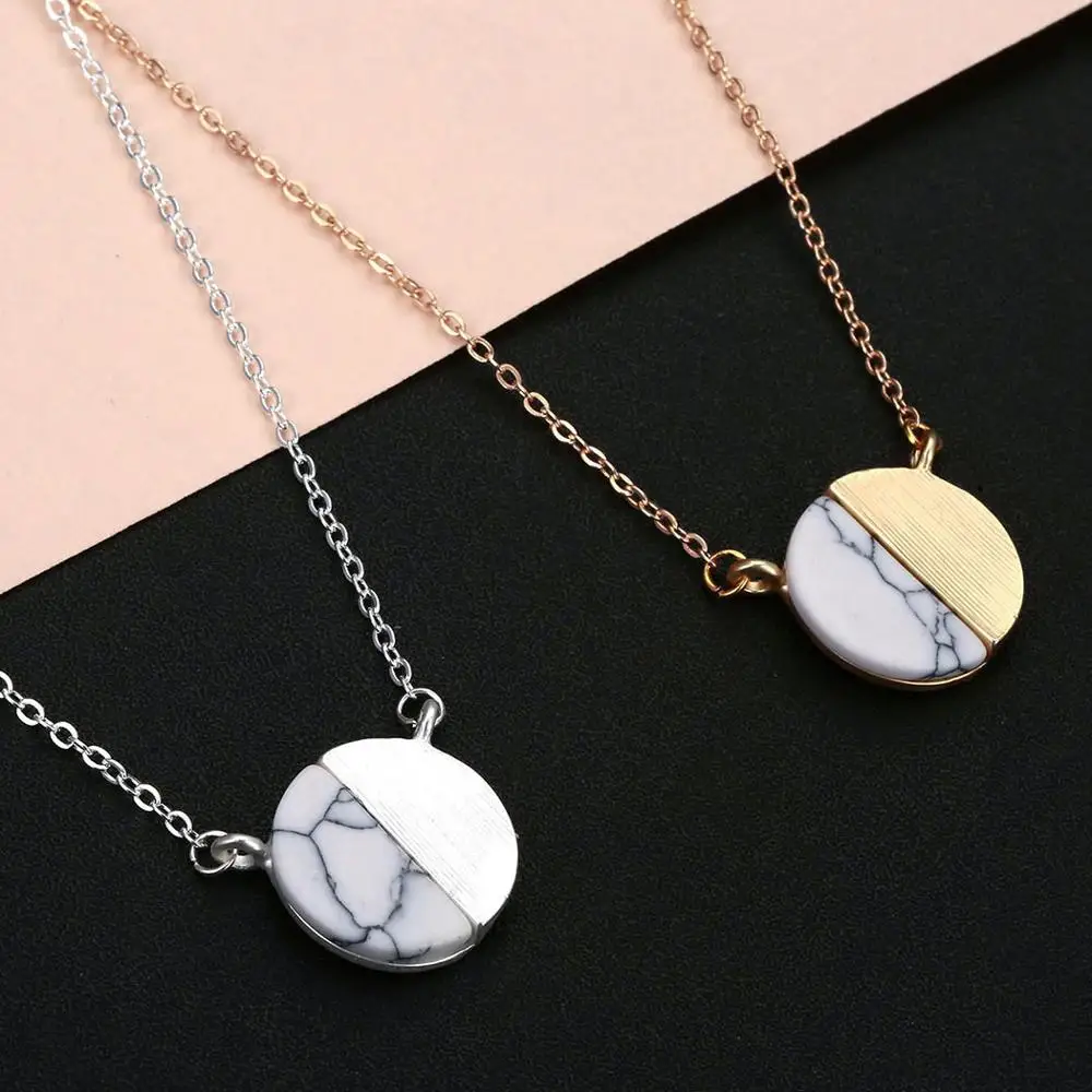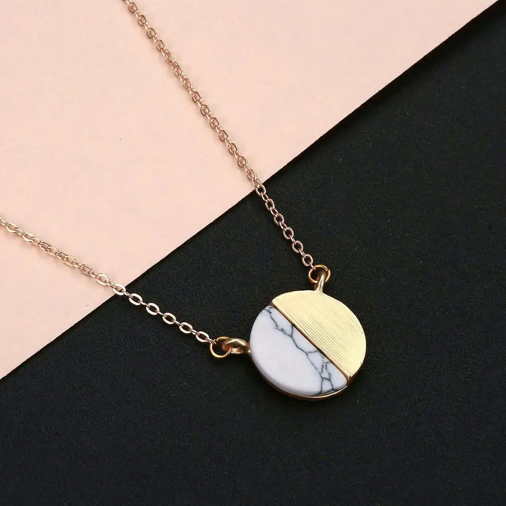 Ожерелье Todorova, круглое ожерелье из женское дисковое натурального камня с подвеской из белого мрамора в золотой рамке, ювелирные изделия, подарок
