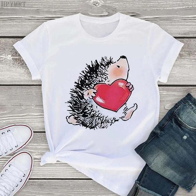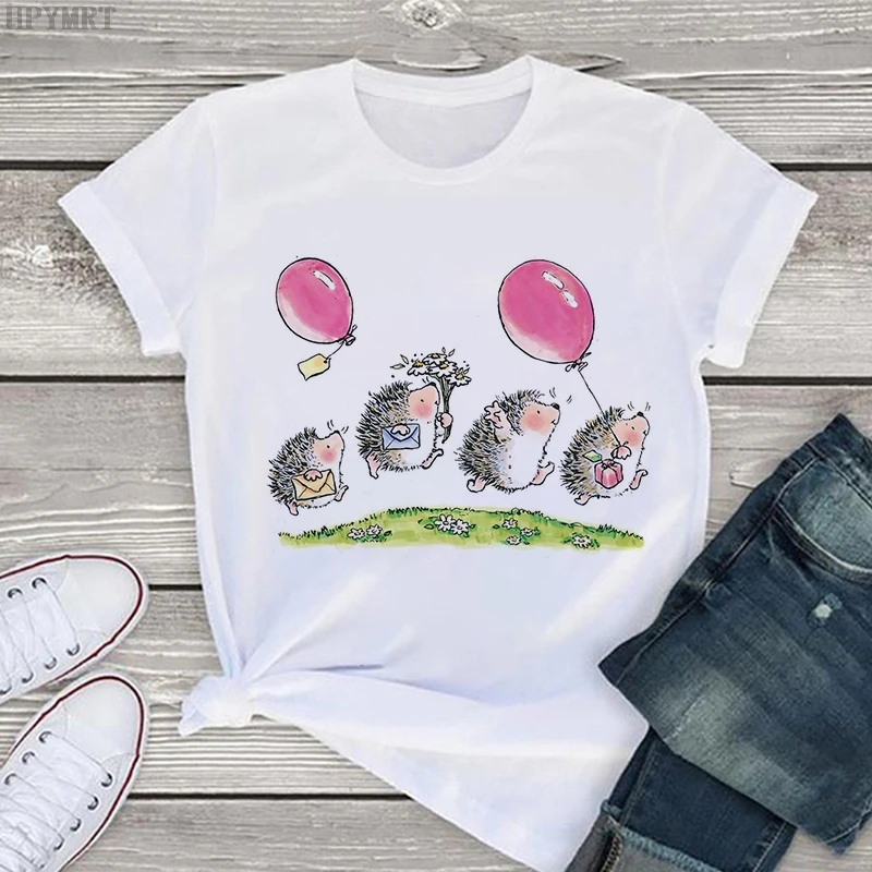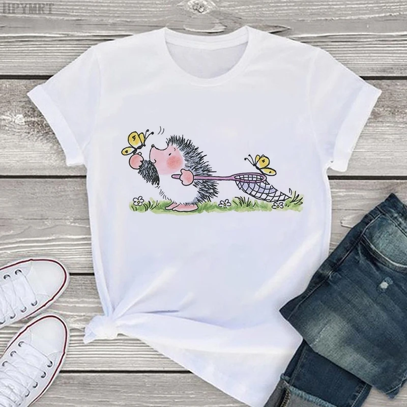Женская футболка с принтом ежа и одуванчика, летняя женская футболка большого размера в стиле Харадзюку, модная повседневная футболка с коротким рукавом