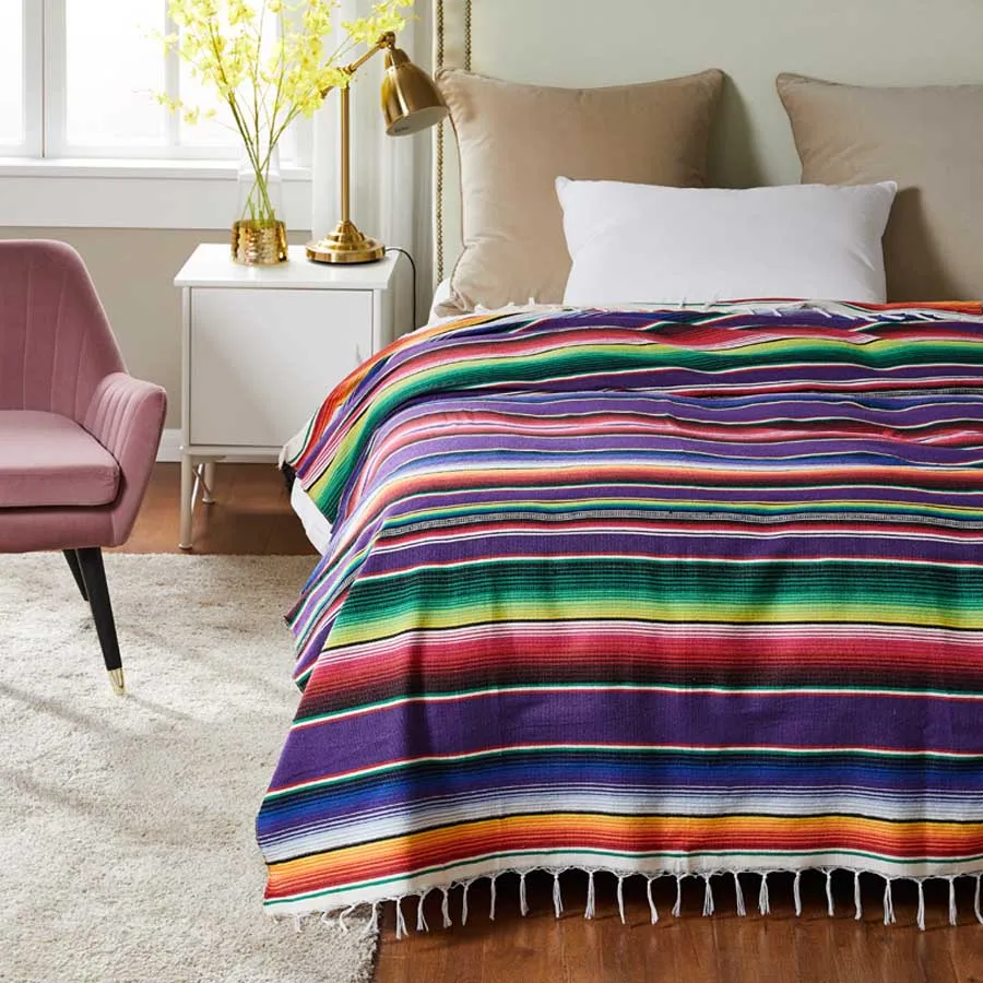 Покрывало в мексиканском стиле с радужными полосками, покрывало для...