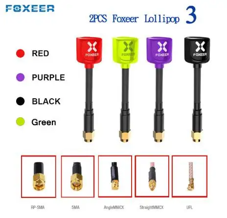 Антенна Foxeer Lollipop 3 V3, 5,8G, 7,2 дБи, TX, RX, RHCP, FPV, SMA, RPSMA, UFL, прямаяугловая, MMCX g, FPV, для радиоуправляемого дрона, 2 шт.