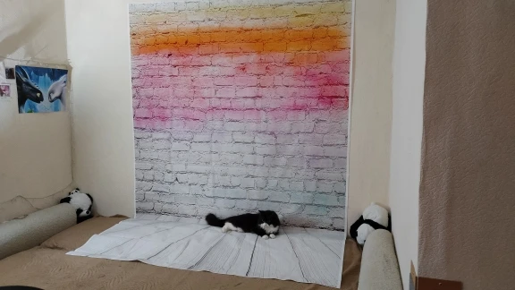Прекрасный фотофон, выглядит очень сильно и красиво на фото. Есть небольшой запах, но 15 минут на балконе решили эту проблему. Места сгиба также можно устранить легло) Фото делала пробно просто, чтобы посмотреть)
