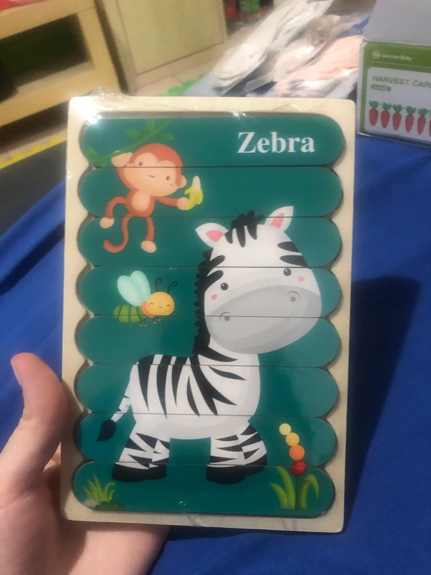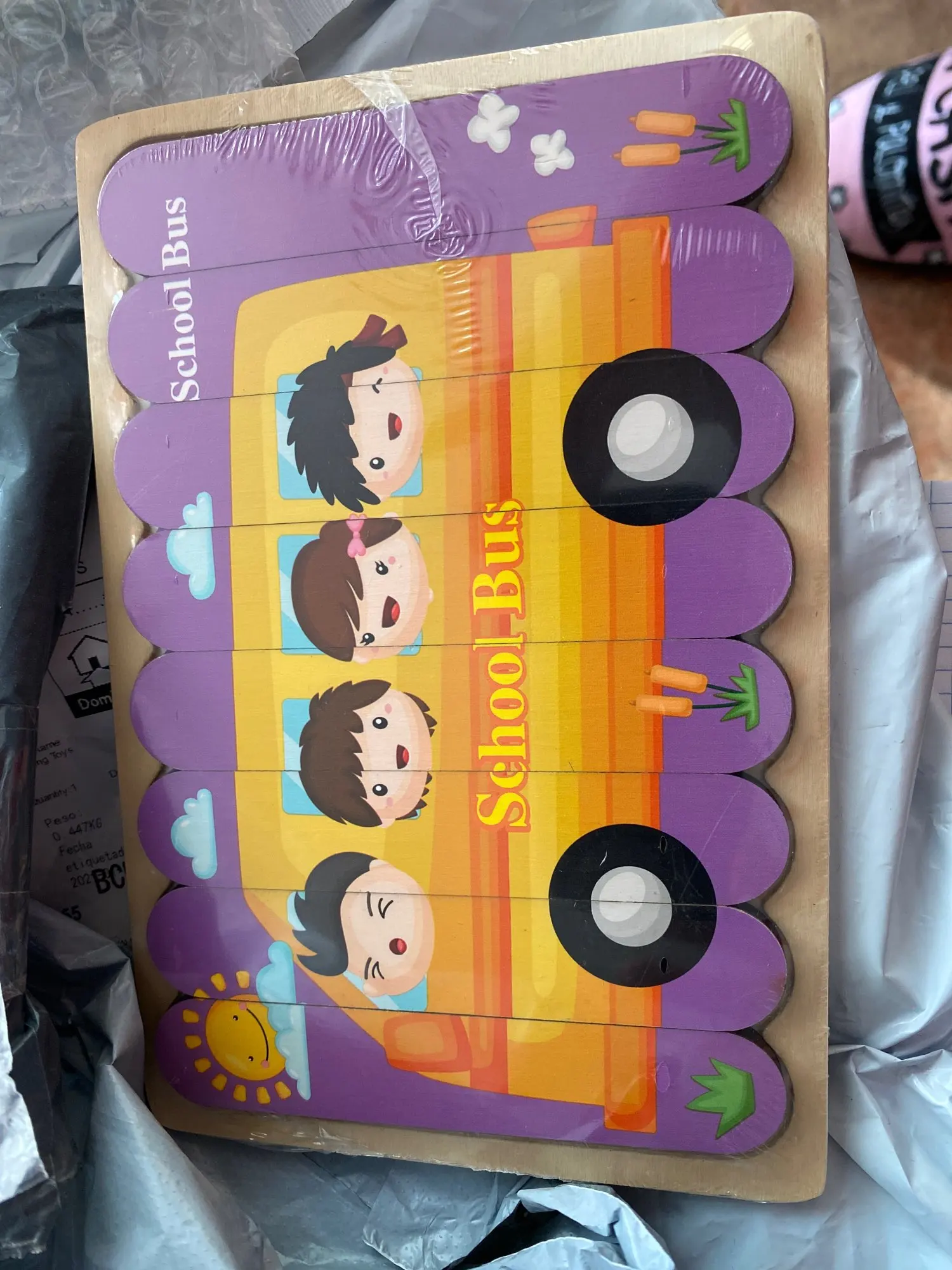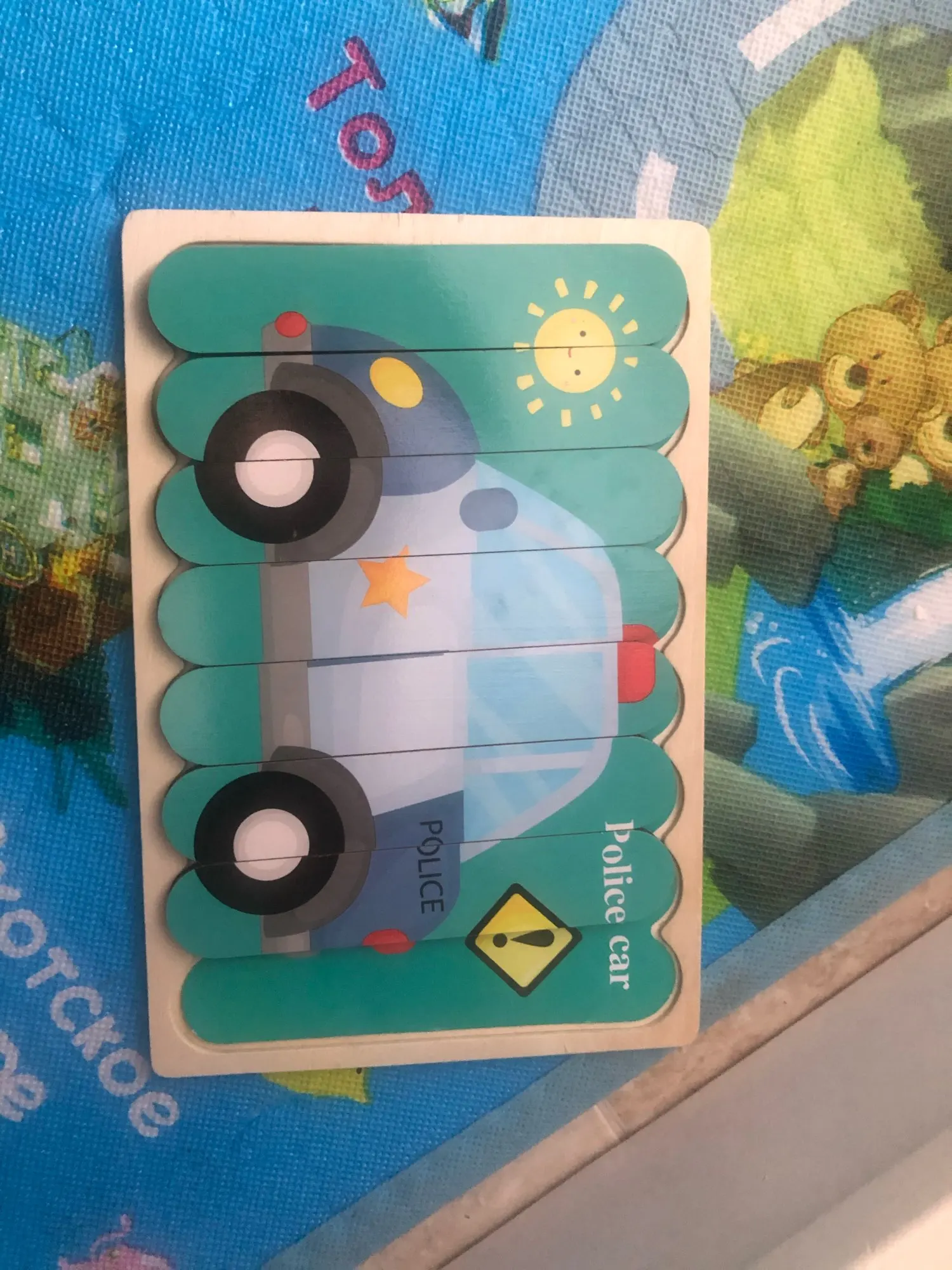 Прикольный пазл для малышей - брала на 2 года. Палочки - обработаны Хорошо. Заусенцев у дерева - нет. Картинка яркая. Приклеена Хорошо. Двухсторонняя.