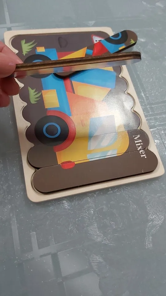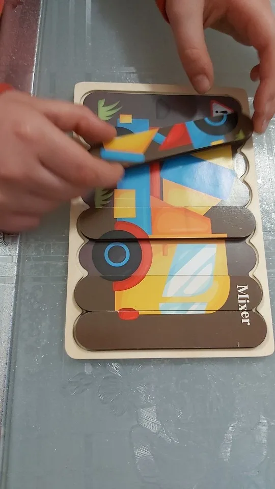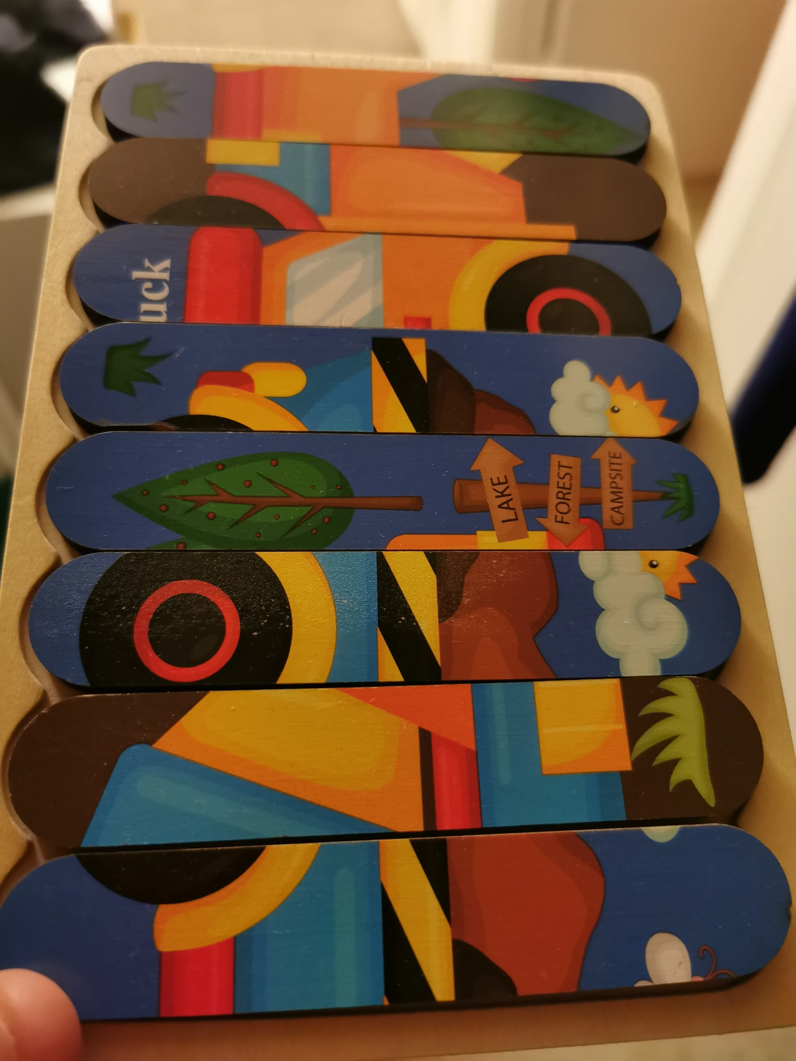Очень хорошо Очень яркие цвета пазла. Хорошее качество древесины. Две версии пазла очень милые. Оригинальная головоломка с палками.