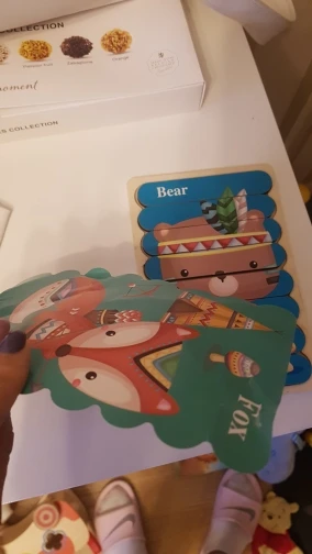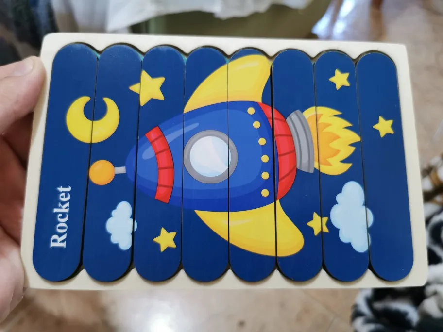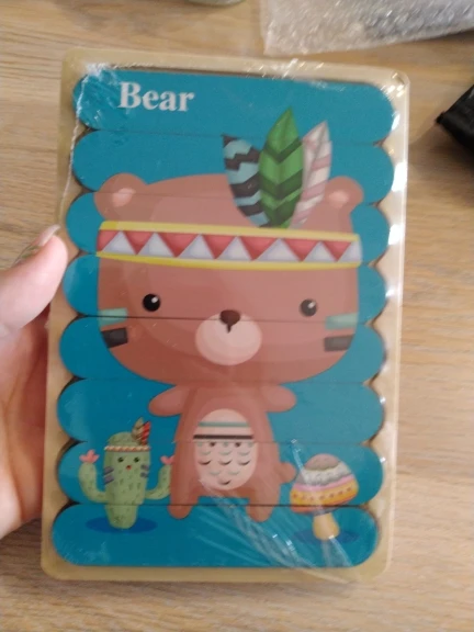 заказ был сделан 10.02, получила 12.03, почти месяц, оч качественно прокрашено, нет заусенцев, есть вкладыш бумажка с рисунком, 2 рисунка на разных сторонах деревяшек и на разных сторонах вкладыша, яркие, четкие, все понравилось
