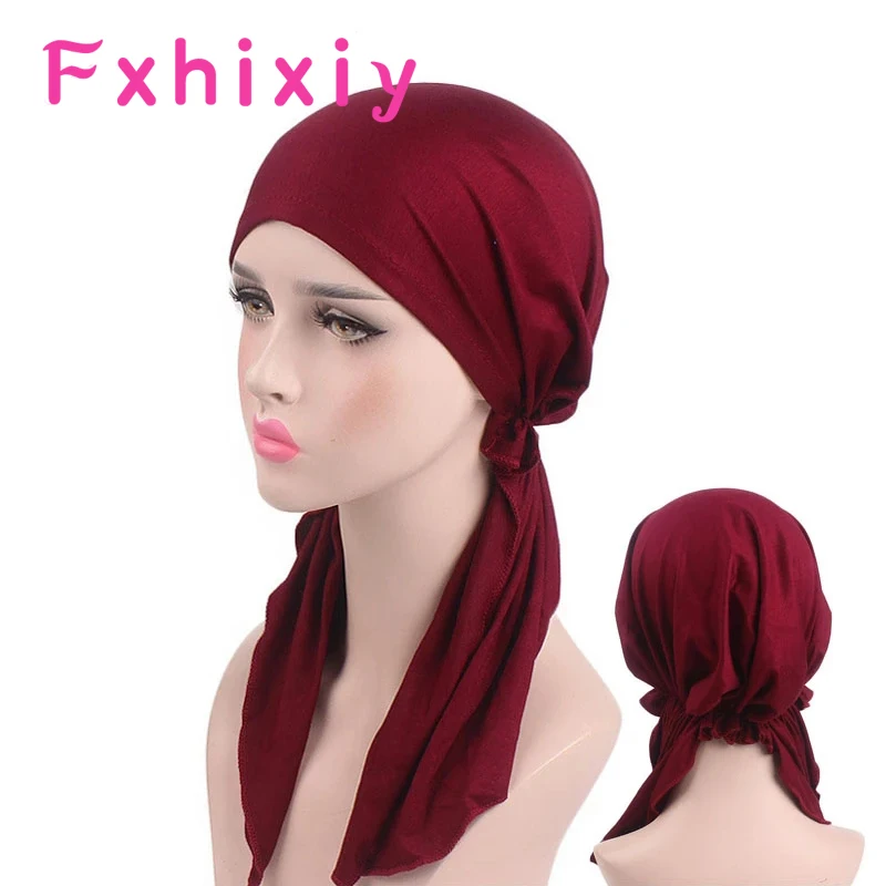 Новинка, эластичный цельный тюрбан для мусульманских женщин, головной платок, предварительно привязанный, для химиотерапии, шапочка при химиотерапии рака, головной убор, аксессуары для волос