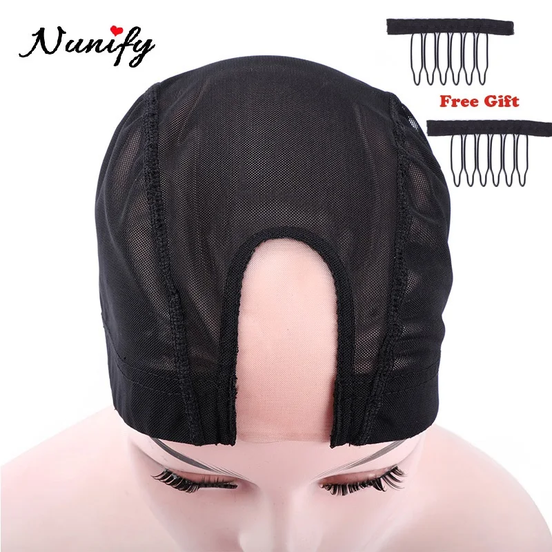 U-образная шапочка для парика Nunify, эластичная сетка для волос, сетчатая шапочка, швейцарская черная сетка из спандекса, легкое Пришивание волос, эластичная ткацкая шапочка