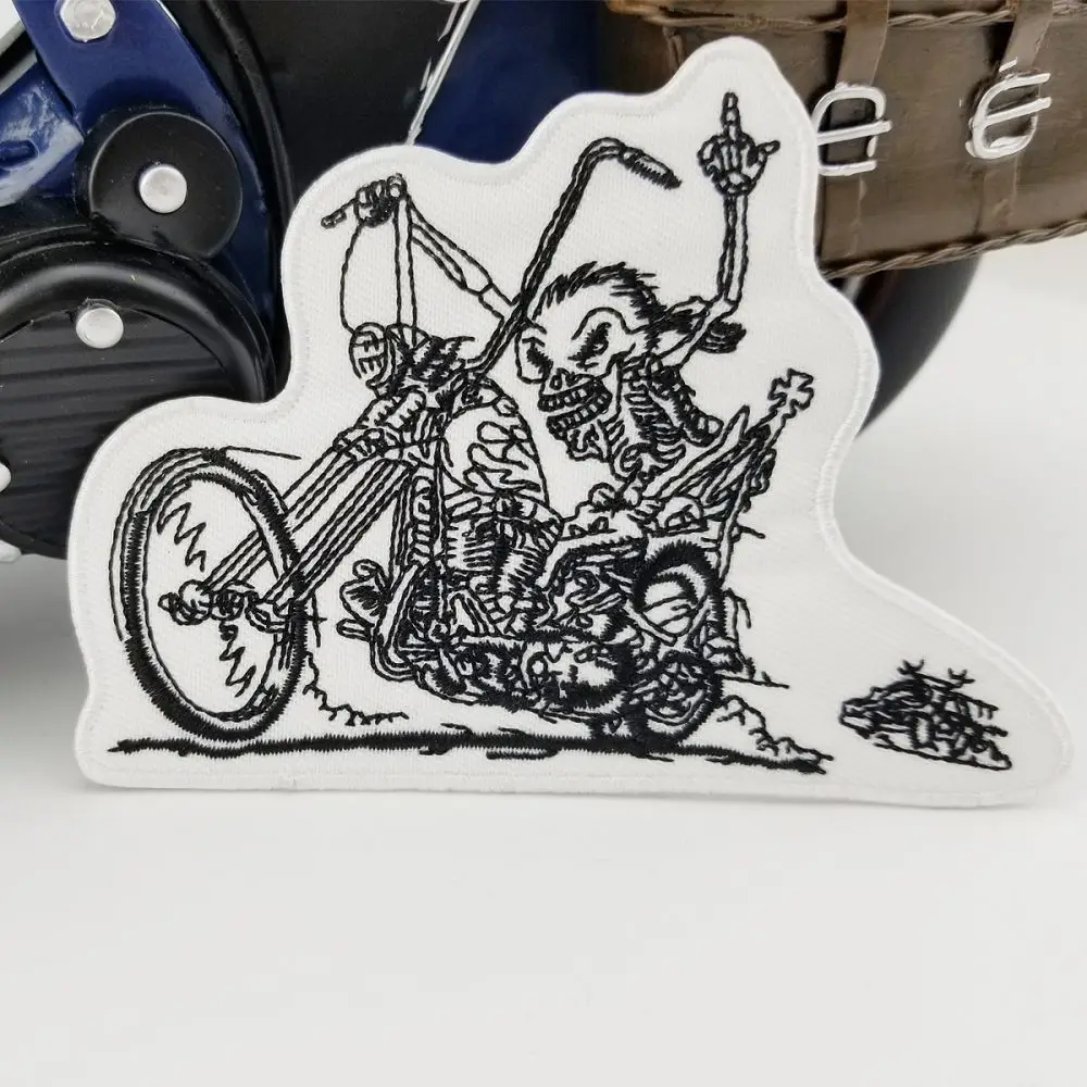 Крутой скелет, вышитый утюгом для одежды, Череп, байкерские нашивки...