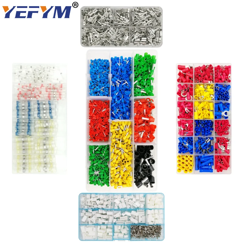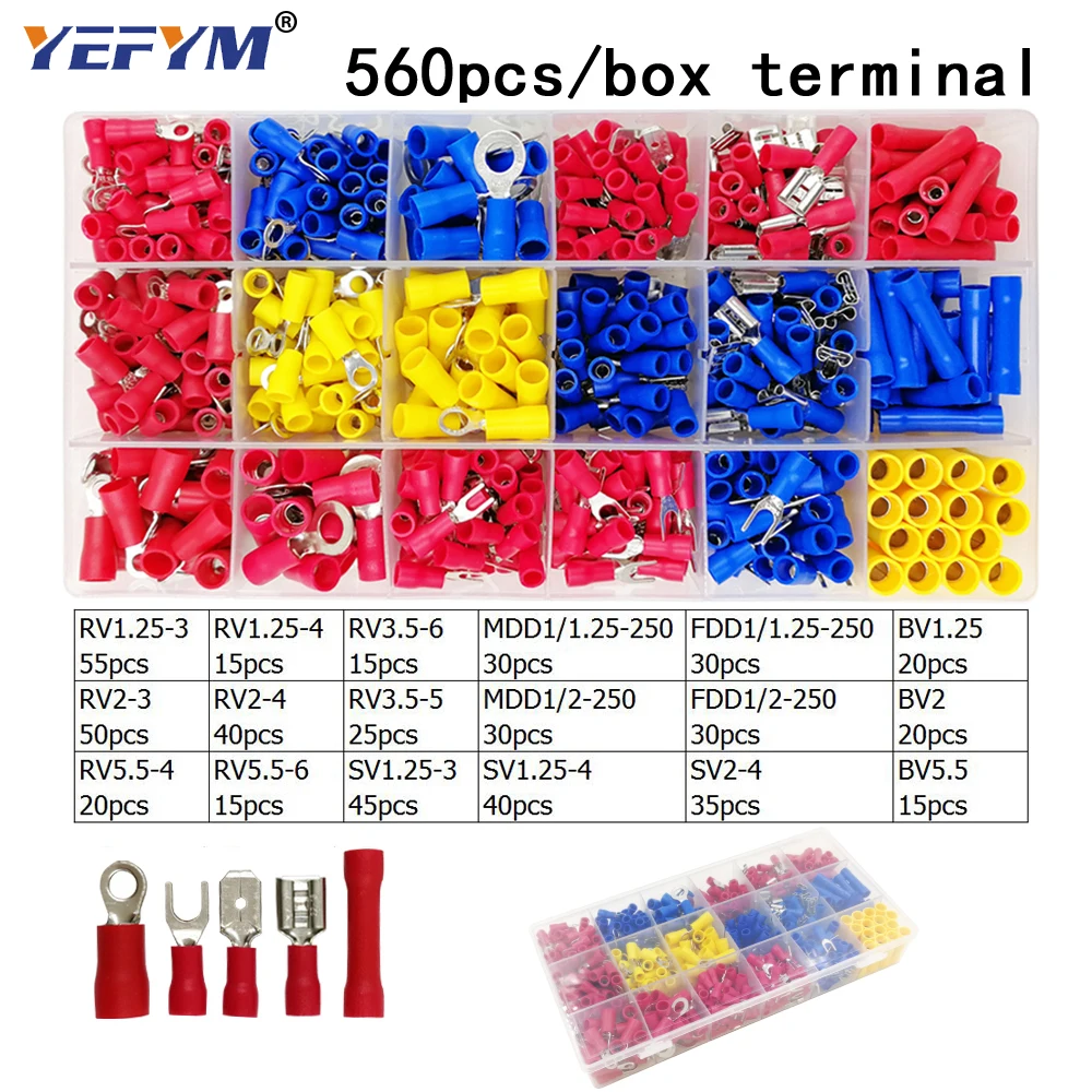 Трубчатые изолирующие обжимные клеммы YEFYM, изолирующие кольцевые клеммы, штепсельная заглушка 2,8, 4,8, 6,3, коннектор, Блок 9 видов, набор в коробке