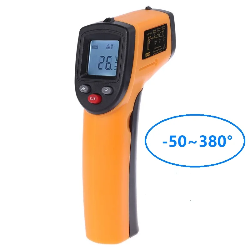 Примечание: Это промышленный термометр, подходящий для поверхности предметов, но, пожалуйста, не используйте его на теле человека.