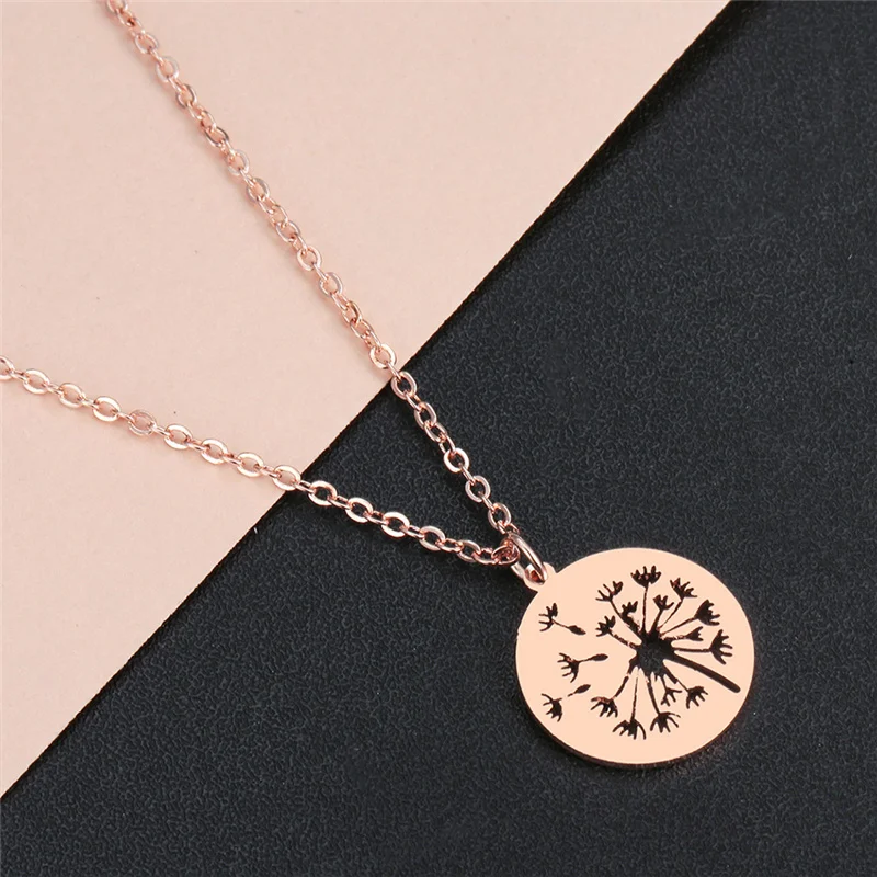Новинка из нержавеющей стали ожерелье из розового золота Цвет, принт в виде одуванчиков, ожерелье, подвеска, колье, для женщин, девочек, модное ювелирное изделие, подарок длиной 45 см (1 шт.)