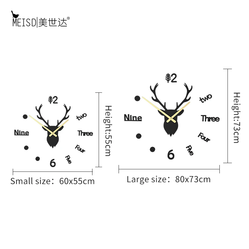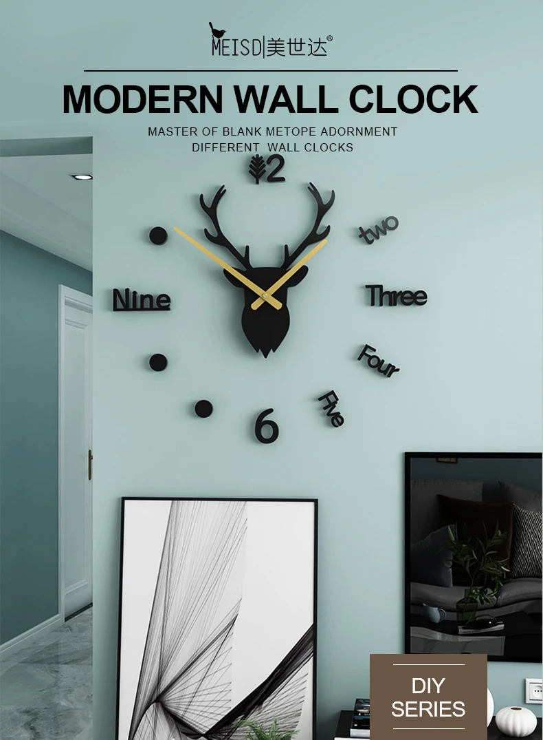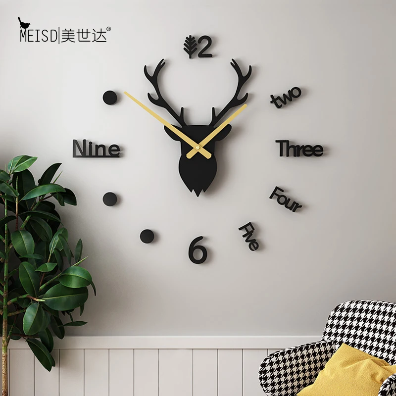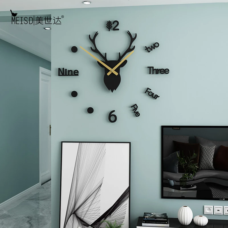 Бесшумные акриловые большие декоративные цифры Олень, настенные часы сделай сам, современный дизайн, гостиная, домашнее рождественское украшение, часы с наклейками