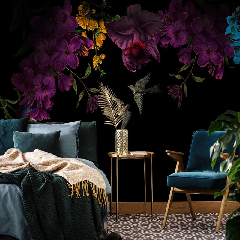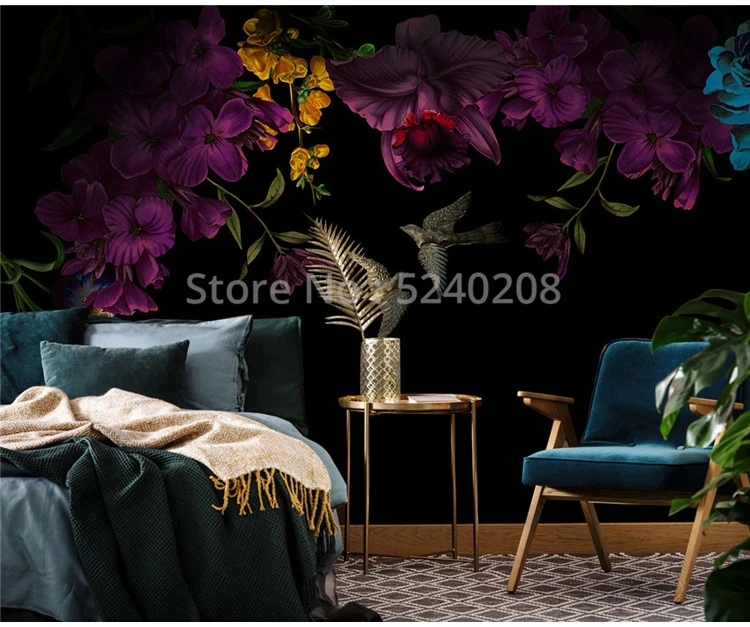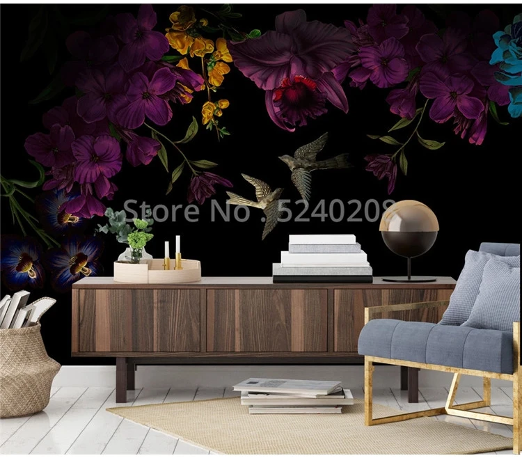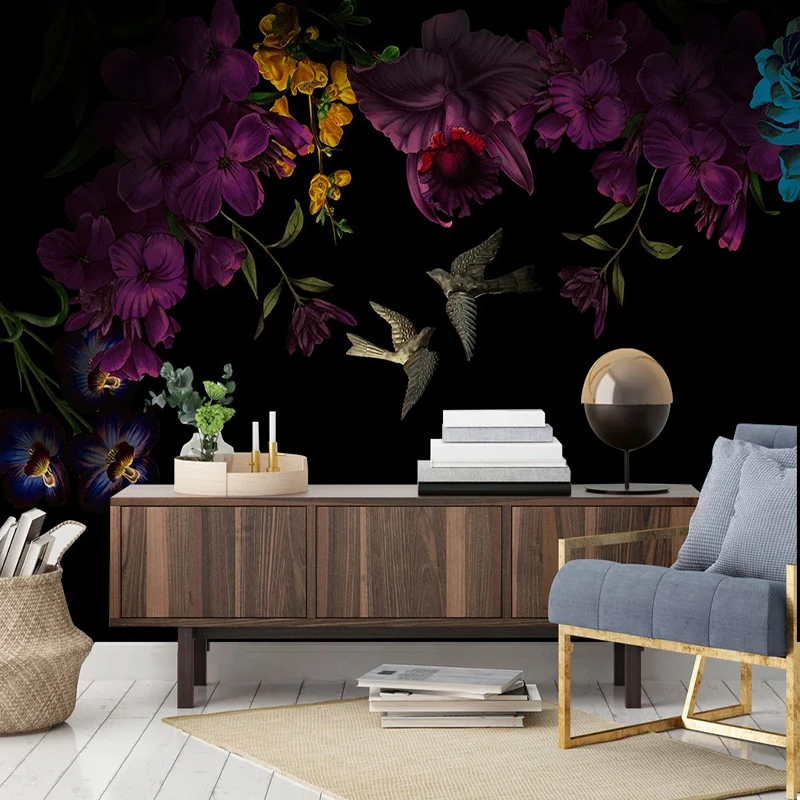 Настенные 3D-обои на заказ с изображением пионов, цветы на черном фоне, роспись стен для гостиной, телевизора, дивана, спальни, домашний декор, 3D наклейки на стену
