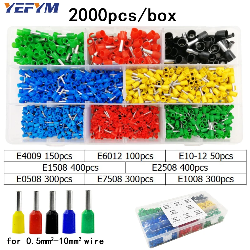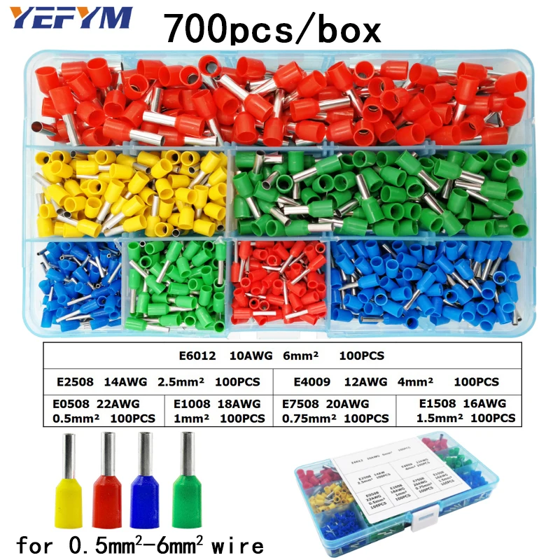 Обжимные изолированные трубчатые клеммы в коробке, набор обжимных соединителей для проводки E0508 E7508 E1008 E1508 E2508 E4009 E6012 E1012