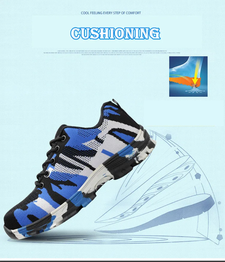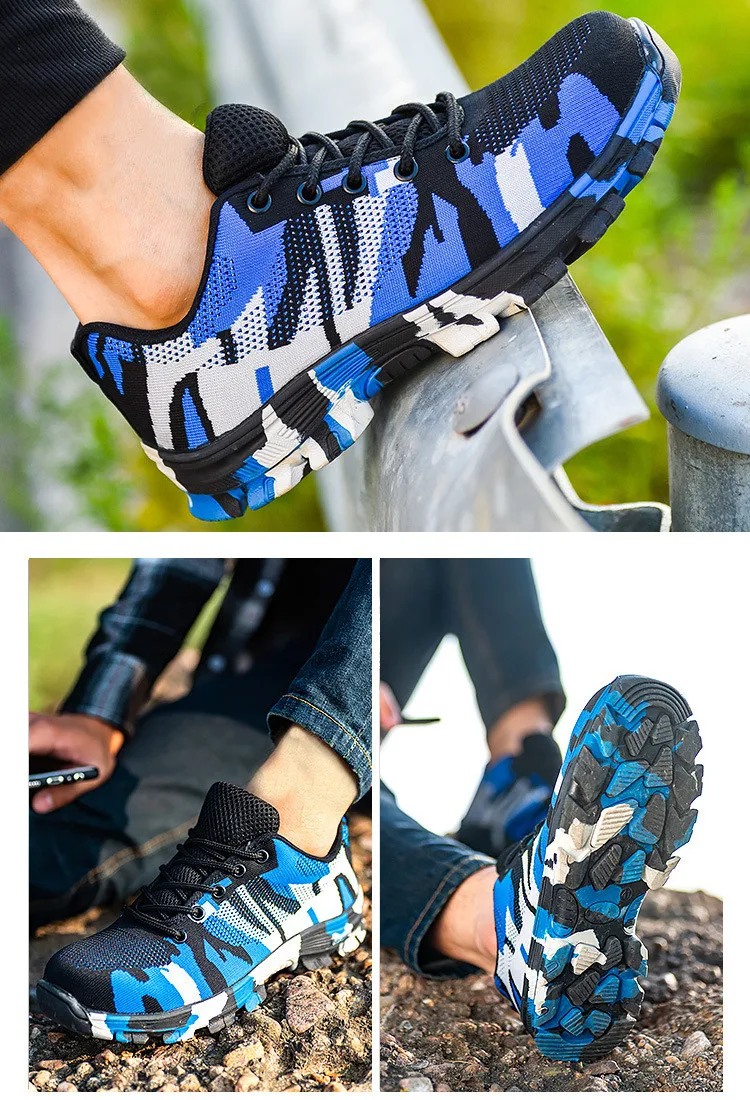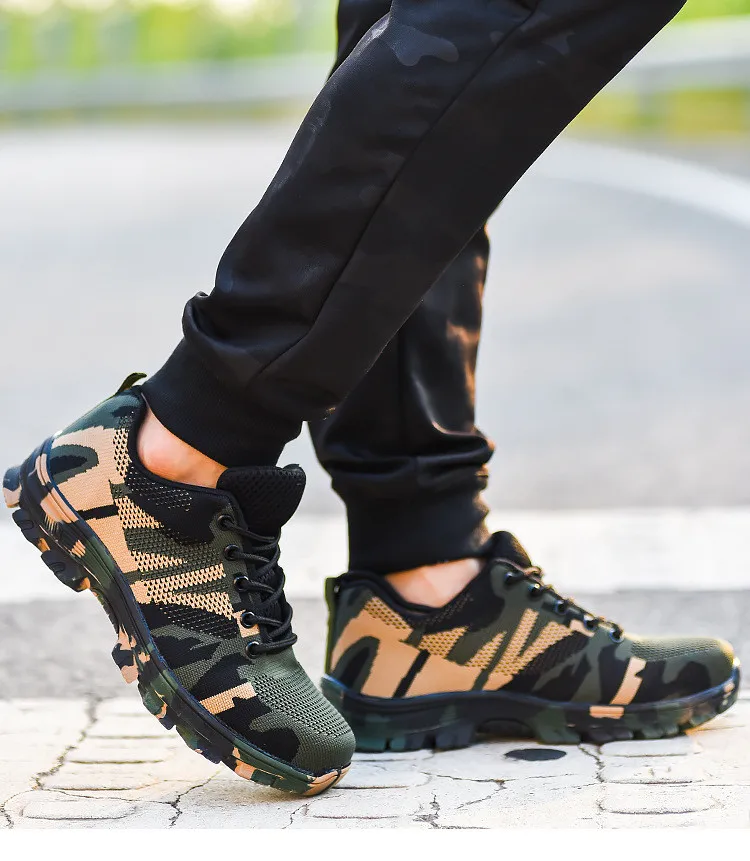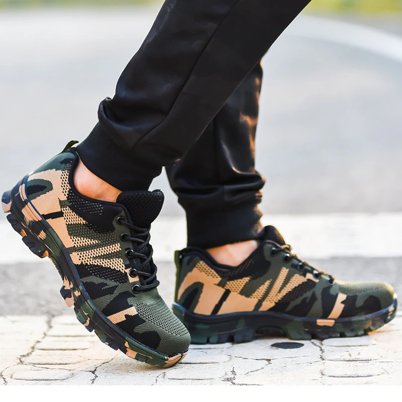 Кроссовки мужские рабочие со стальным носком, камуфляжные дышащие, непрокалываемые Нескользящие, для ходьбы, большие размеры