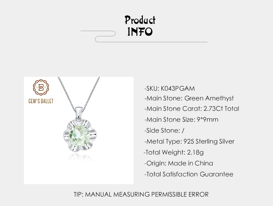 Женский кулон с зеленым аметистом, ожерелье из серебра 925 пробы с ...