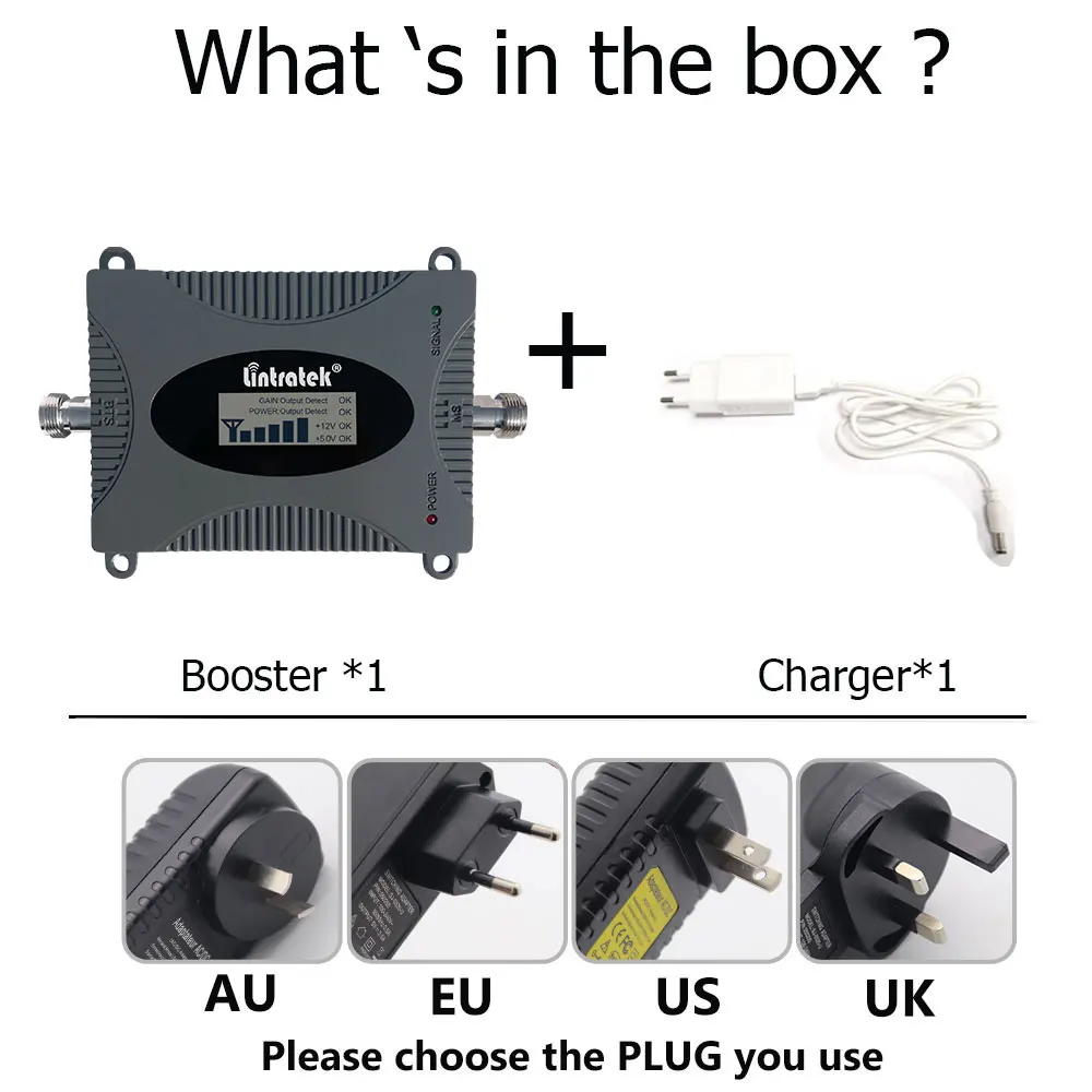 1. Усилитель для 1700/2100 МГц B4 2. Зарядное устройство с вилкой EU (адаптер AU/UK/US поставляется с товаром в соответствии с вашим обычным использованием)
