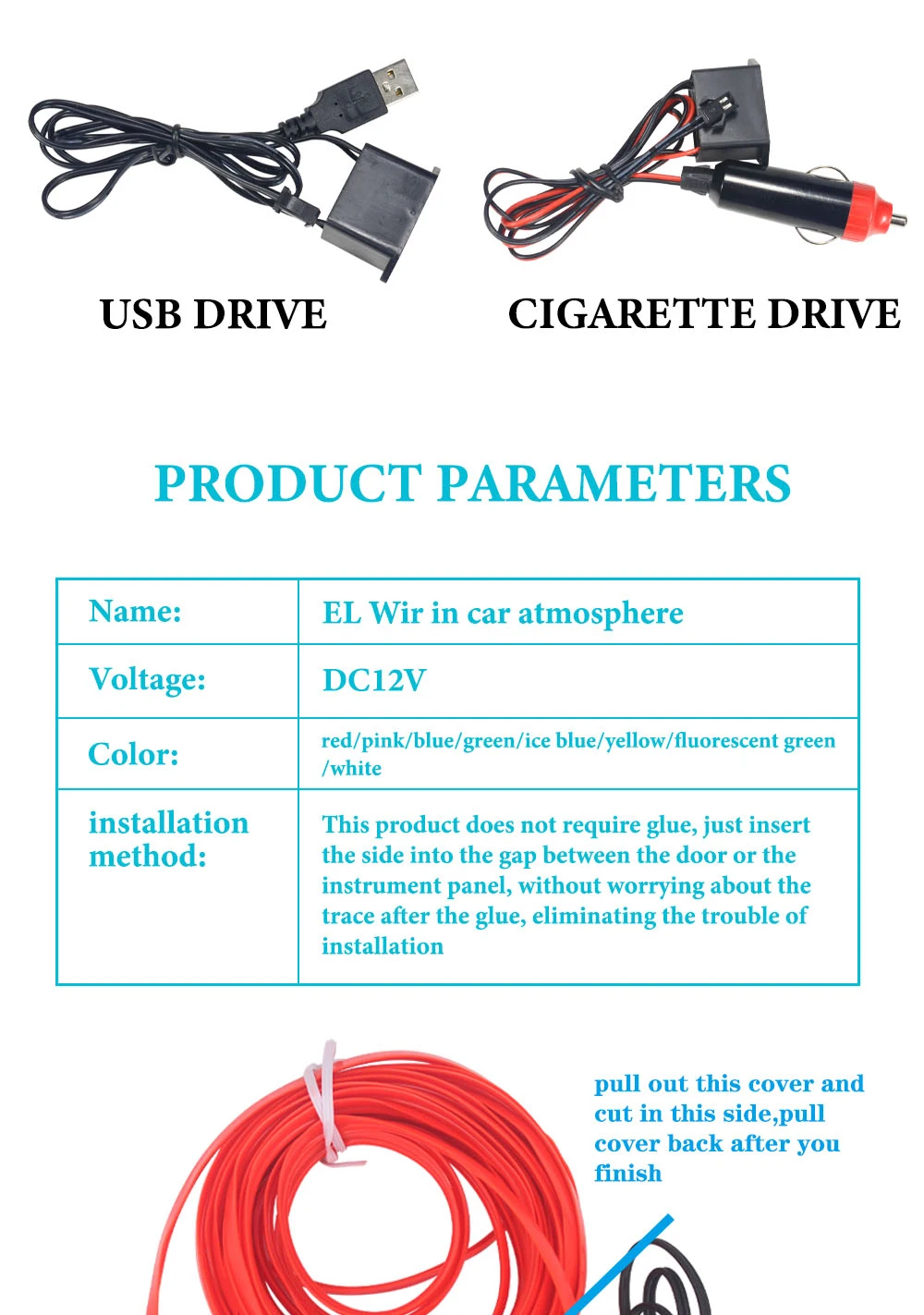 5 м освещение салона автомобиля неоновый свет гирлянда провод EL трос Трубка окружающая Светодиодная лента украшение гибкая трубка 8 цветов авто светодиод