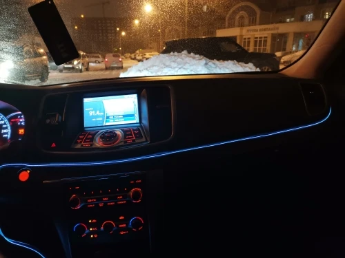 очень доволен товаром! монтируется легко, 5 метров хватило, был лишний кусок хотел обрезать но хорошо что не резко обрезал, коротнуло но остался гореть дальше! идет не большой фон но из под сидения не слышно! доставка быстрая!!!