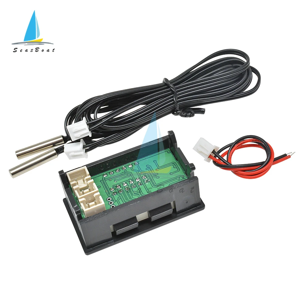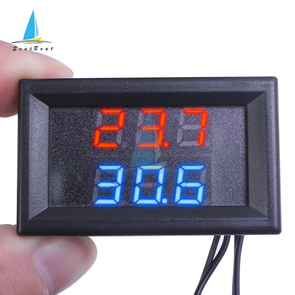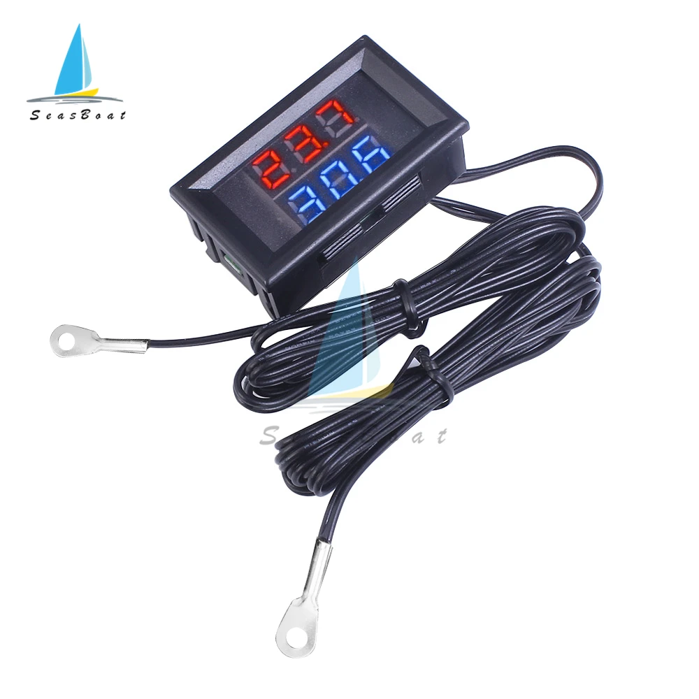 Цифровой термометр со светодиодным дисплеем, мини-прибор для измерения температуры, с двойным NTC водонепроницаемым щупом, 4-28 В постоянного тока