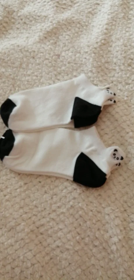 Очень милые носки. Они хорошо изготовлены и также удобные. Я размер 40 (европейский) и они идеально подходят для меня. Швы на Панде довольно хороши, и они сидят на хорошем росте. Я использую пару для меня и еще 2 для моих сестер. Они полюбят их. Ткань не самая красивая, но в порядке. Доставка занимает около 3 недель.
