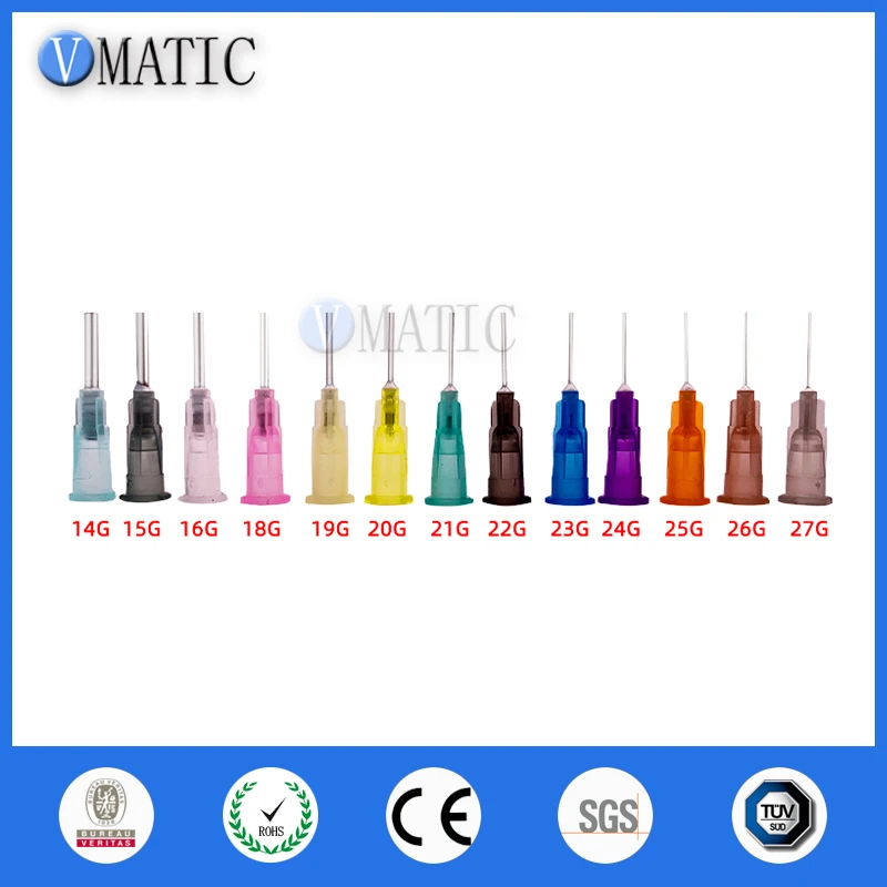 Штык тупой иглы Манометр Цвет Номер товара. Внутренний диаметр (мм) Наружный диаметр (мм) Длина Упаковка 14 г Сине-зеленый VCK14050 1,8 2 1/2 дюйма 100 шт./пакет 15 г Сине-серый VCK15050 1,6 1,8 1/2 дюйма 100 шт./пакет 16 г Прозрачный VCK16050 1,32 1,6 1/2 дюйма 100 шт./пакет 18 г Розовый VCK18050 0,9 1,2 1/2 дюйма 100 шт./пакет 19 г Молочно-желтый VCK19050 0,84 1,08 1/2 дюйма 100 шт./пакет 20 г Желтый VCK20050 0,62 0,9 1/2 дюйма 100 шт./пакет 21 г Зеленый VCK21050 0,51 0,82 1/2 дюйма 100 шт./пакет 22 г Черный VCK22050 0,41 0,73 1/2 дюйма 100 шт./пакет 23 г Синий VCK23050 0,33 0,63 1/2 дюйма 100 шт./пакет 24 г Фиолетовый VCK24050 0,29 0,55 1/2 дюйма 100 шт./пакет 25 г Оранжевый VCK25050 0,25 0,51 1/2 дюйма 100 шт./пакет 26 г Коричневый VCK26050 0,23 0,45 1/2 дюйма 100 шт./пакет 27 г Серый VCK27050 0,21 0,4 1/2 дюйма 100 шт./пакет